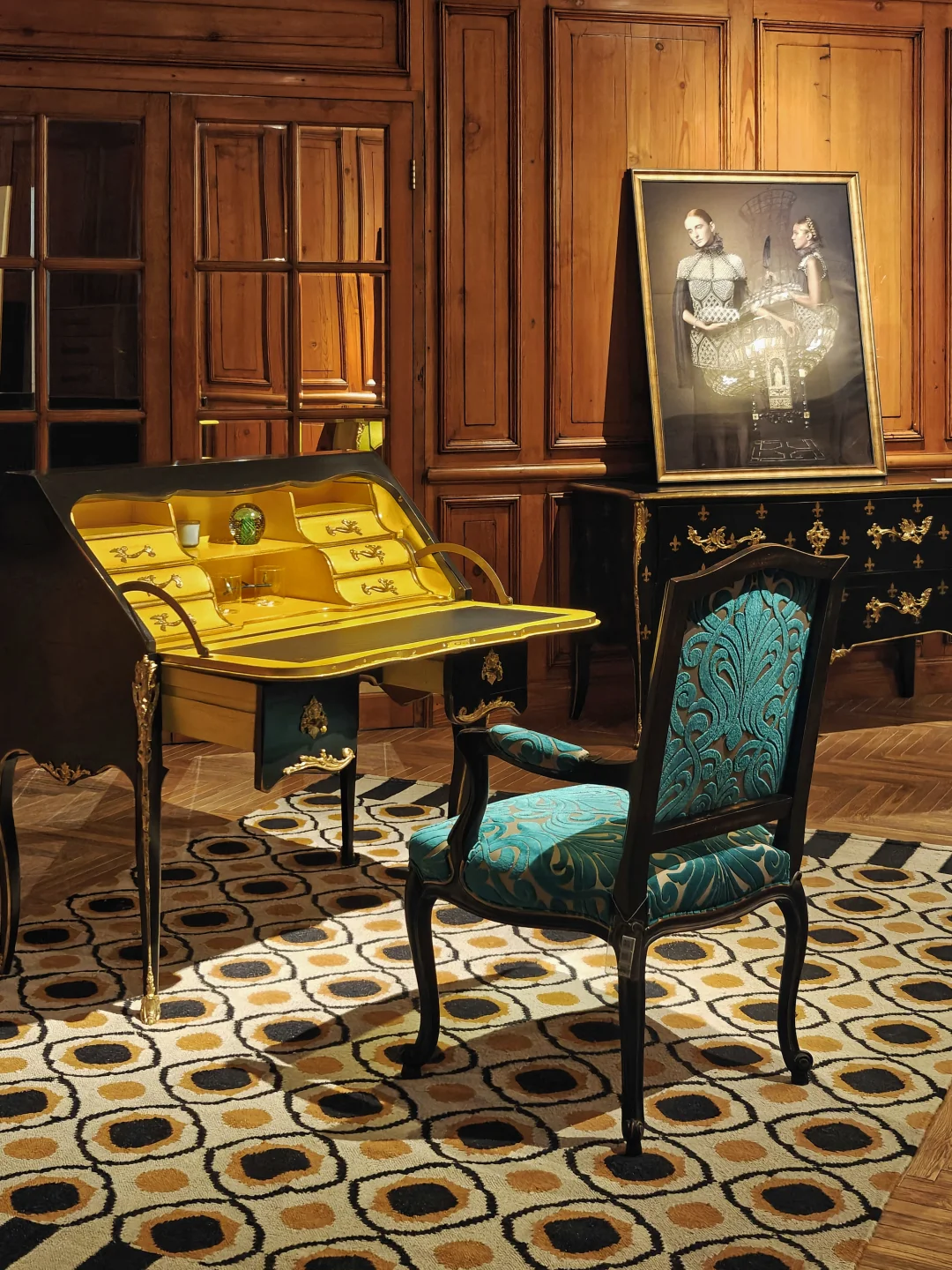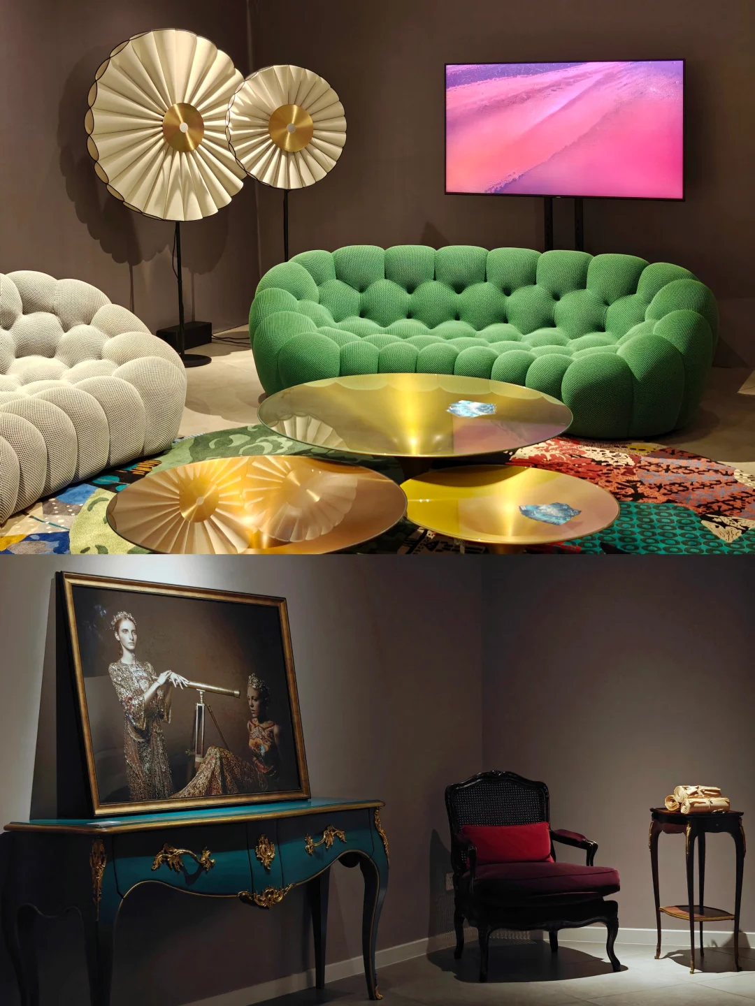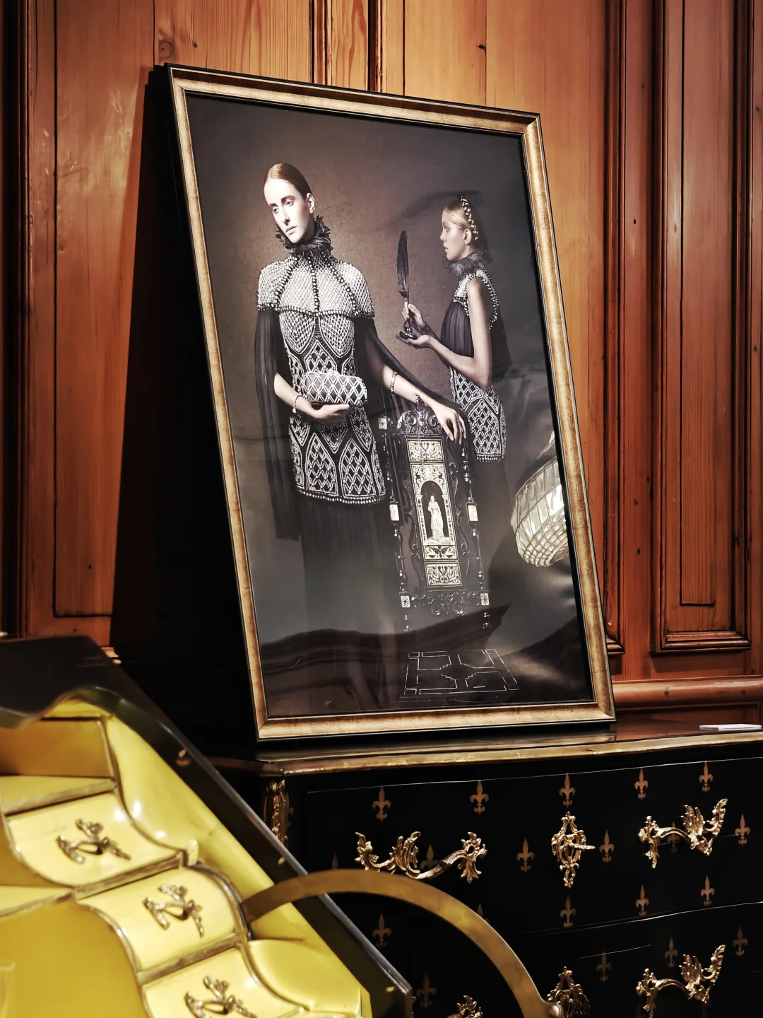 🖼️单独的法式古典风格展厅中的作品亦是戏仿名画的现代演绎性作品,看起来是时尚摄影但AI味儿十足。这bonus倒是本次展中蕞有看头的部分了。