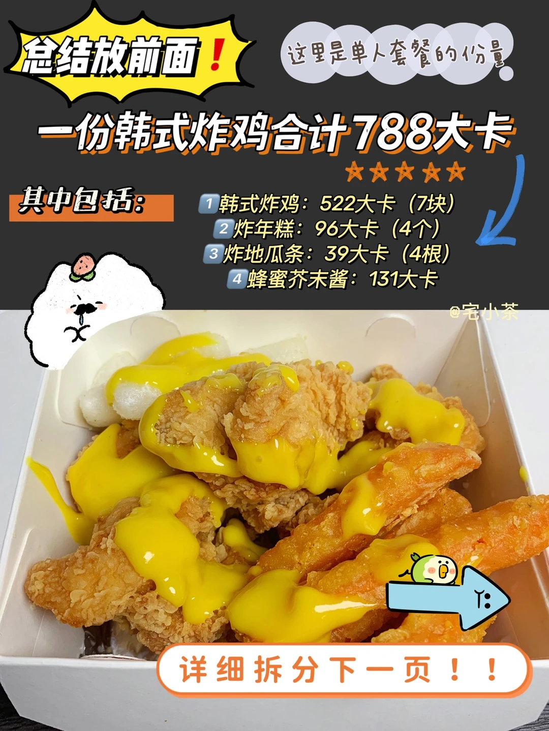 ✅一份韩式炸鸡合计788大卡,其中包括: