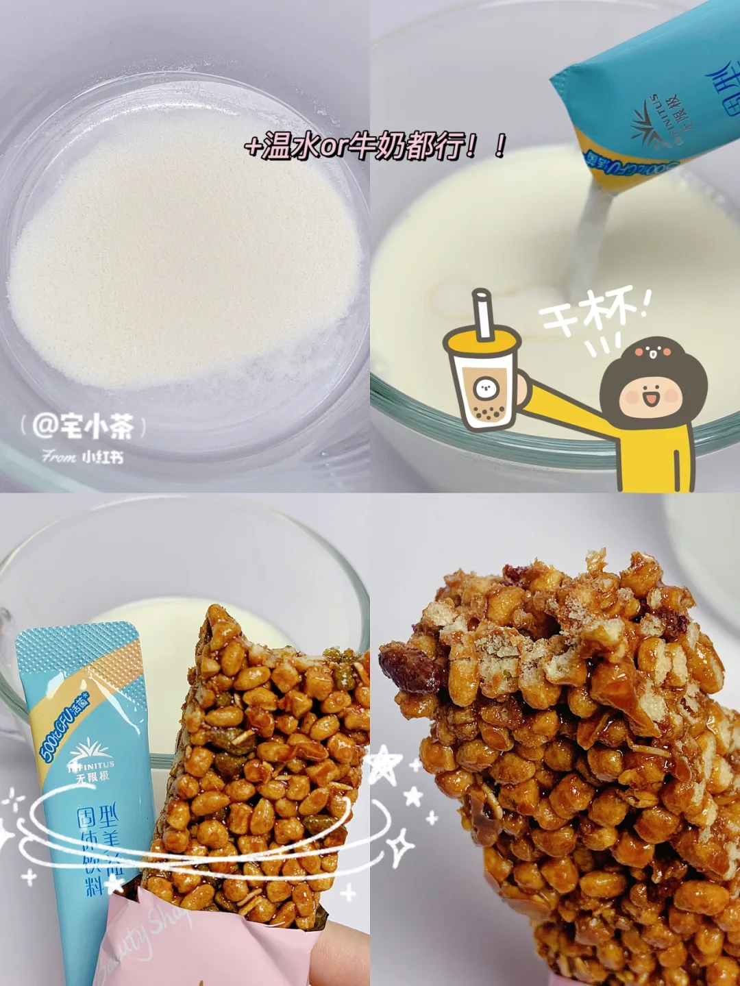 搭配谷物棒的,+温水or牛奶都行。