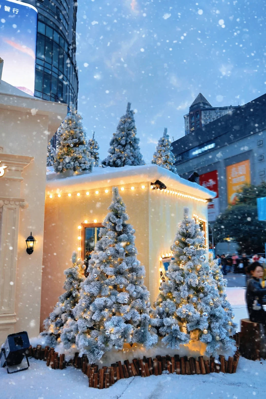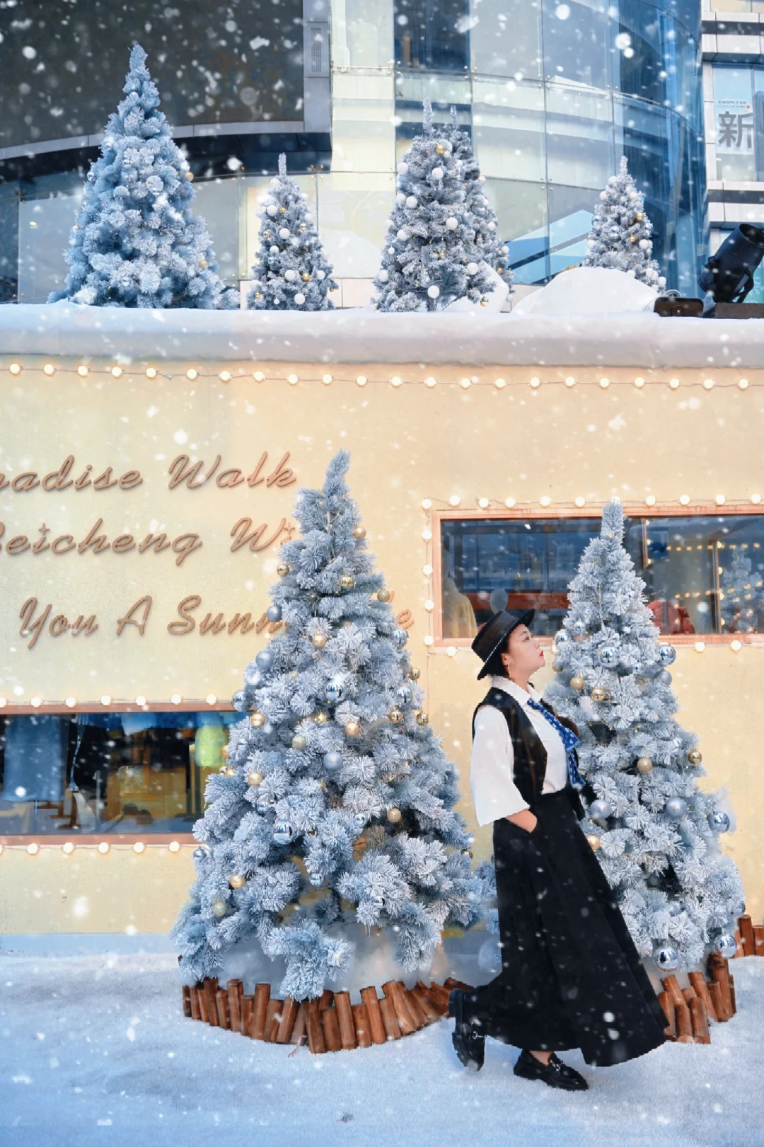 虽然是人工降雪, 这拍照📸氛围感也是绝了, 不出重庆就能拍到的雪景🌨️写真要不要? 赶紧带上你的闺蜜去观音桥~ - ❤️拍照小tips: ❶建议拍摄时间17:00-18:00; ❷用大光圈或者手机📱人像模式拍氛围感; ❸如果没遇上“下”雪时间段的姐妹们,不要慌,自带雪景滤镜get一下~😏【打开图片编辑-滤镜-下雪季】