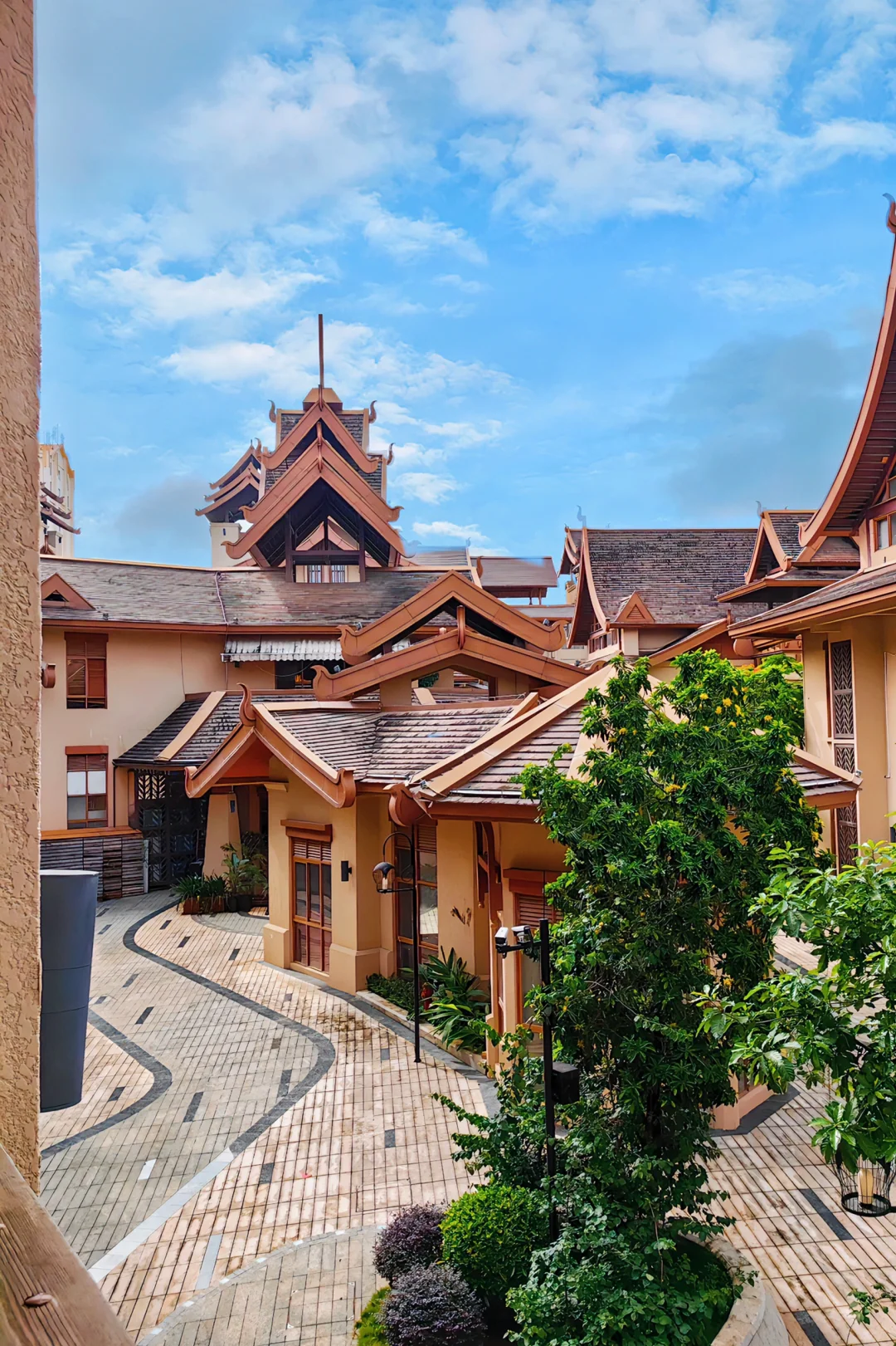 到达当天晚上,灯光下的东南亚风建筑,静谧而幽雅;