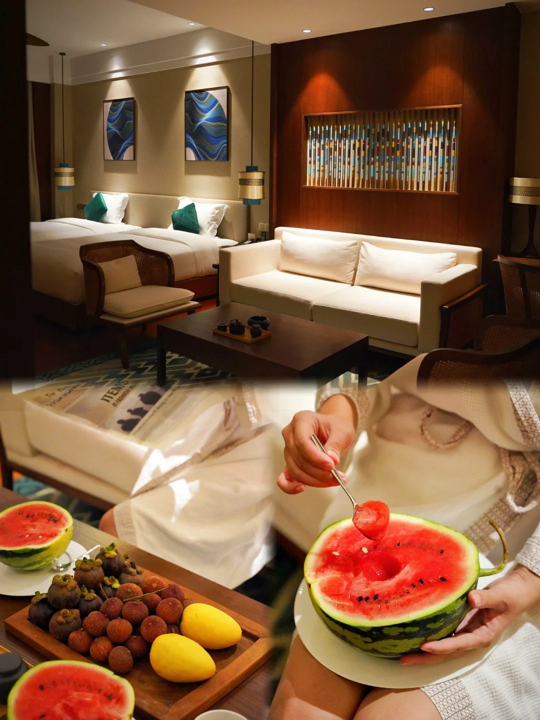 🌲环境:近似于泰国有名的安娜塔娜度假酒店,外观原木结构,室内细节用孔雀🦚、大象🐘、傣族民族元素装点,妥妥的东南亚度假风酒店;