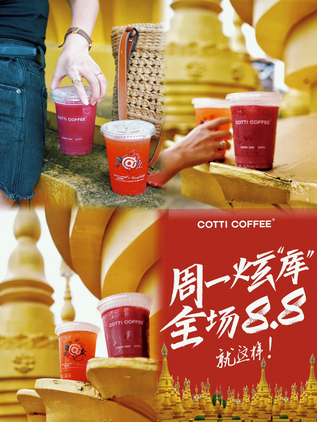 ①这条路不太热闹,建议带着水去等日落🌇,我专门打包了库迪新品柚见手摇冰茶🍵和杨梅吐气库可冰,很适合夏天,酸酸甜甜的解渴又解暑,如果恰逢每周一,全场饮品8.8元,很划算;