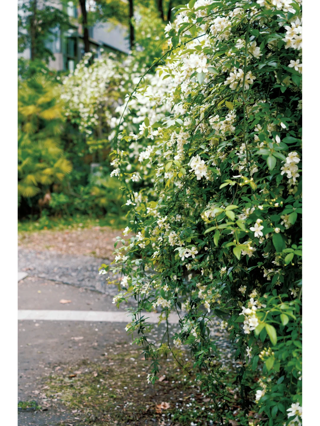 东湖公园的七里香花海在工作日里无人好拍