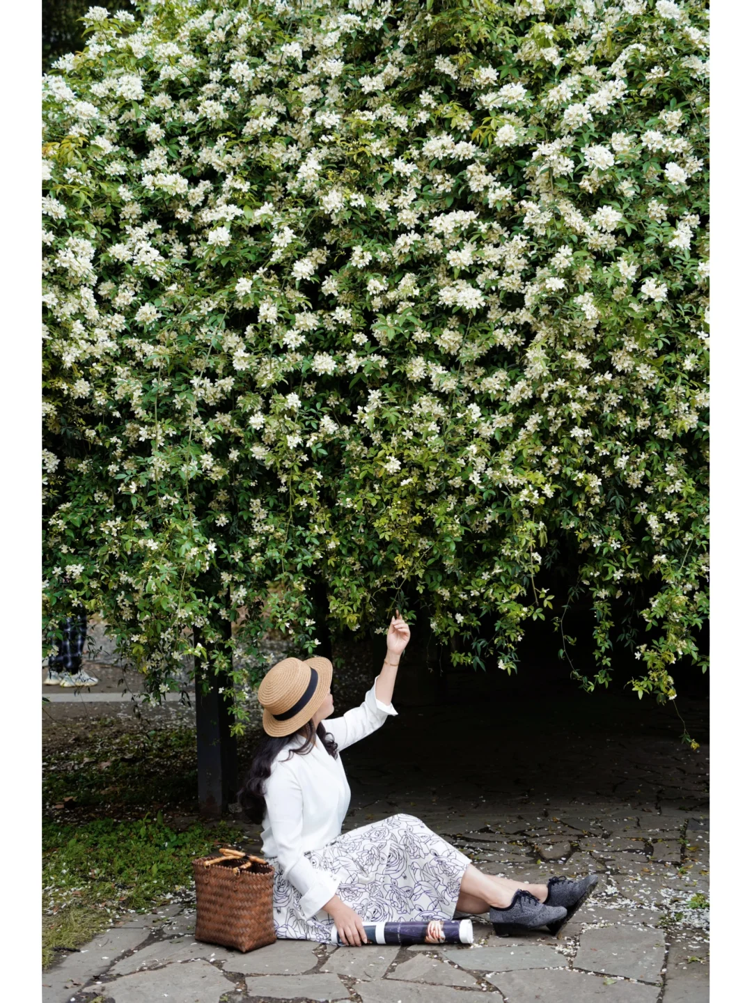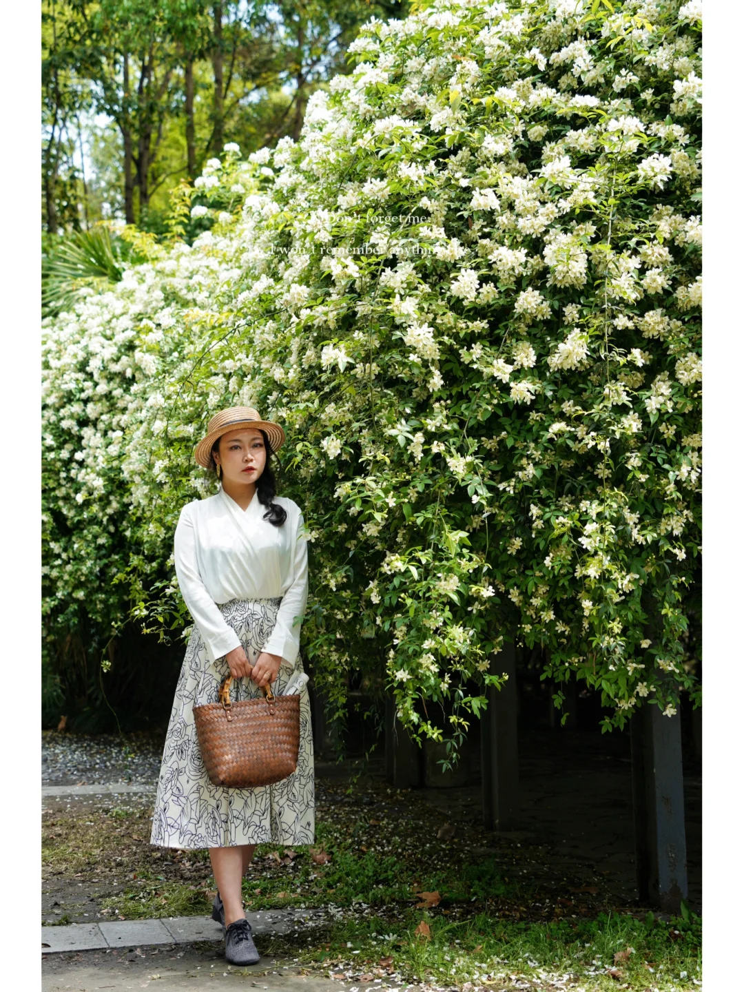 ①👗衣服:法式风总能拍出几分优雅,白色系搭配绿色系或者带花的裙子很不错;