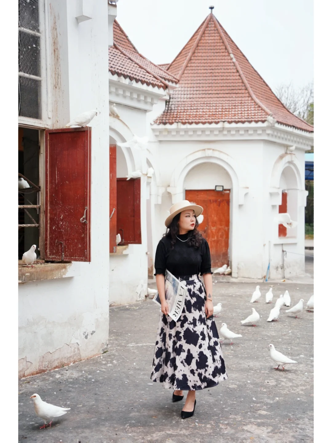 ①法式风和度假风都很ok,长裙👗配平顶帽👒是亘久不变的优雅;