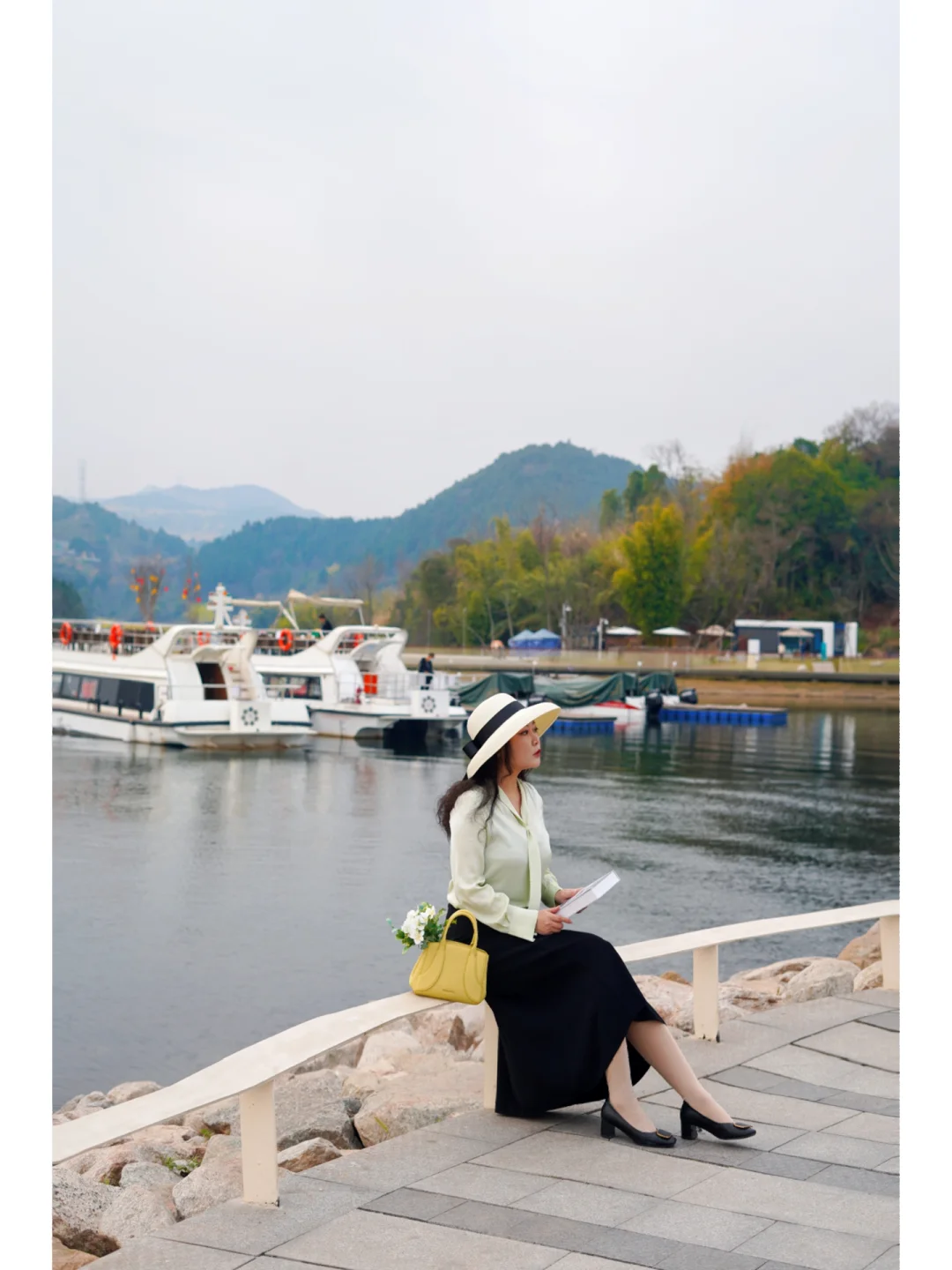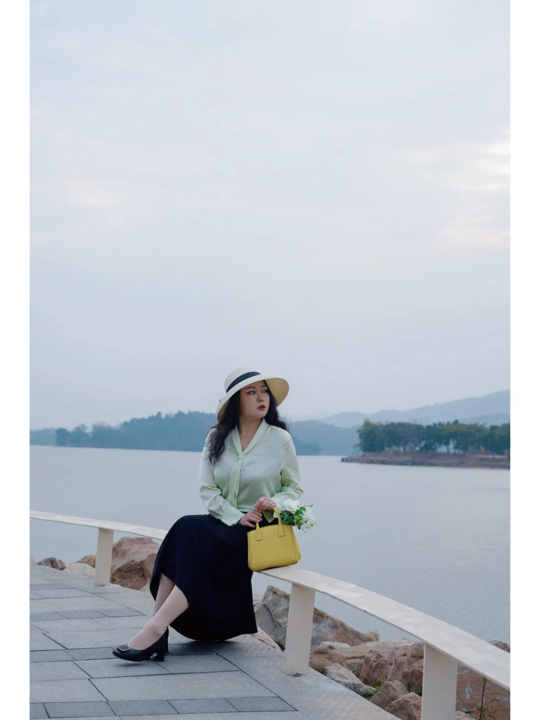 👒帽子:郊外踏青度假风的大檐帽是点睛之笔;