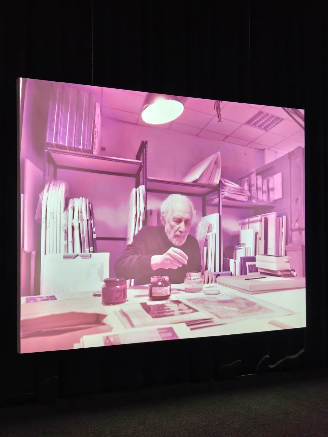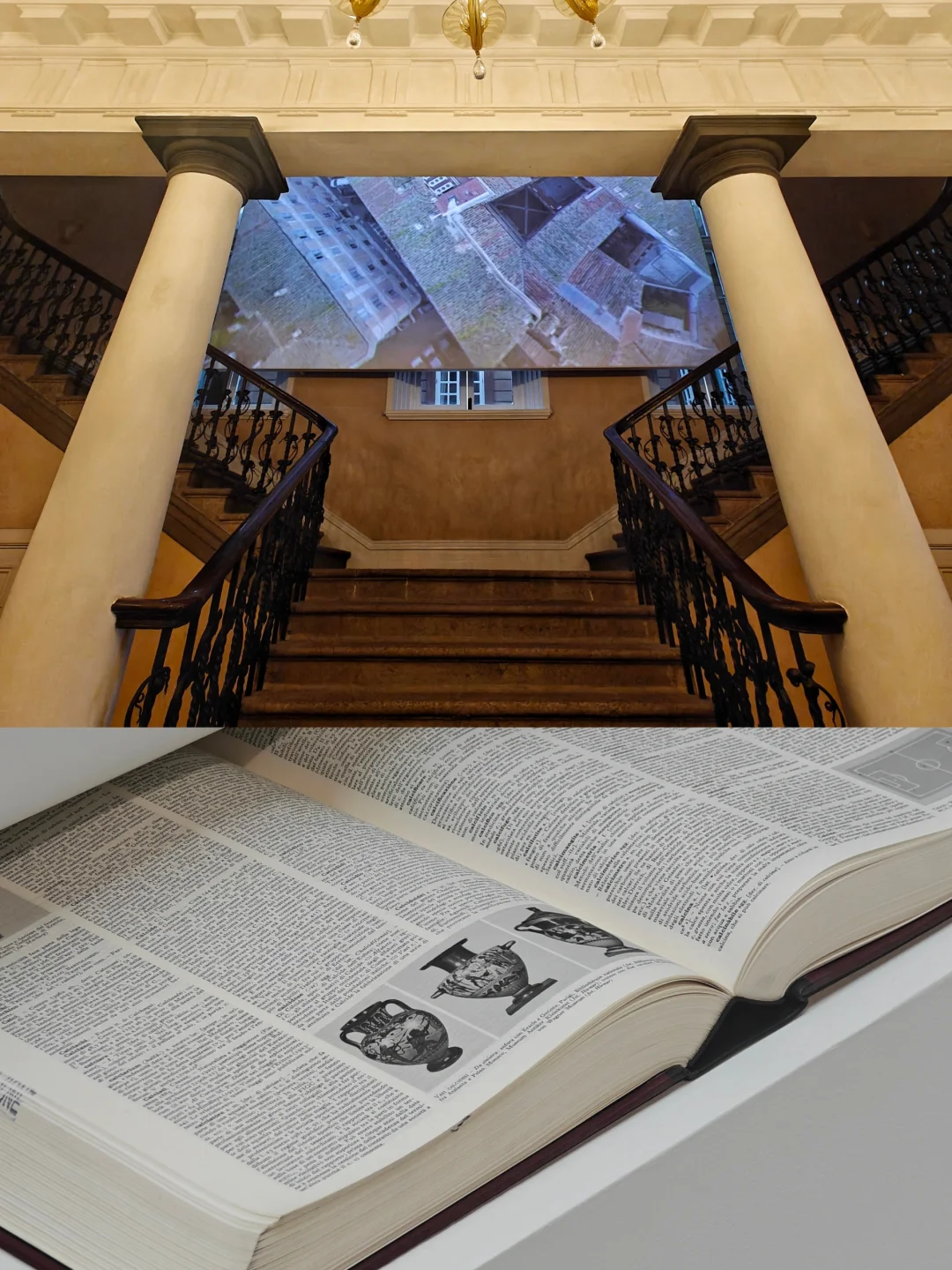 楼梯区域放映特雷卡尼宫的影像作品,邀请观众走入这座世界文化的圣殿。
