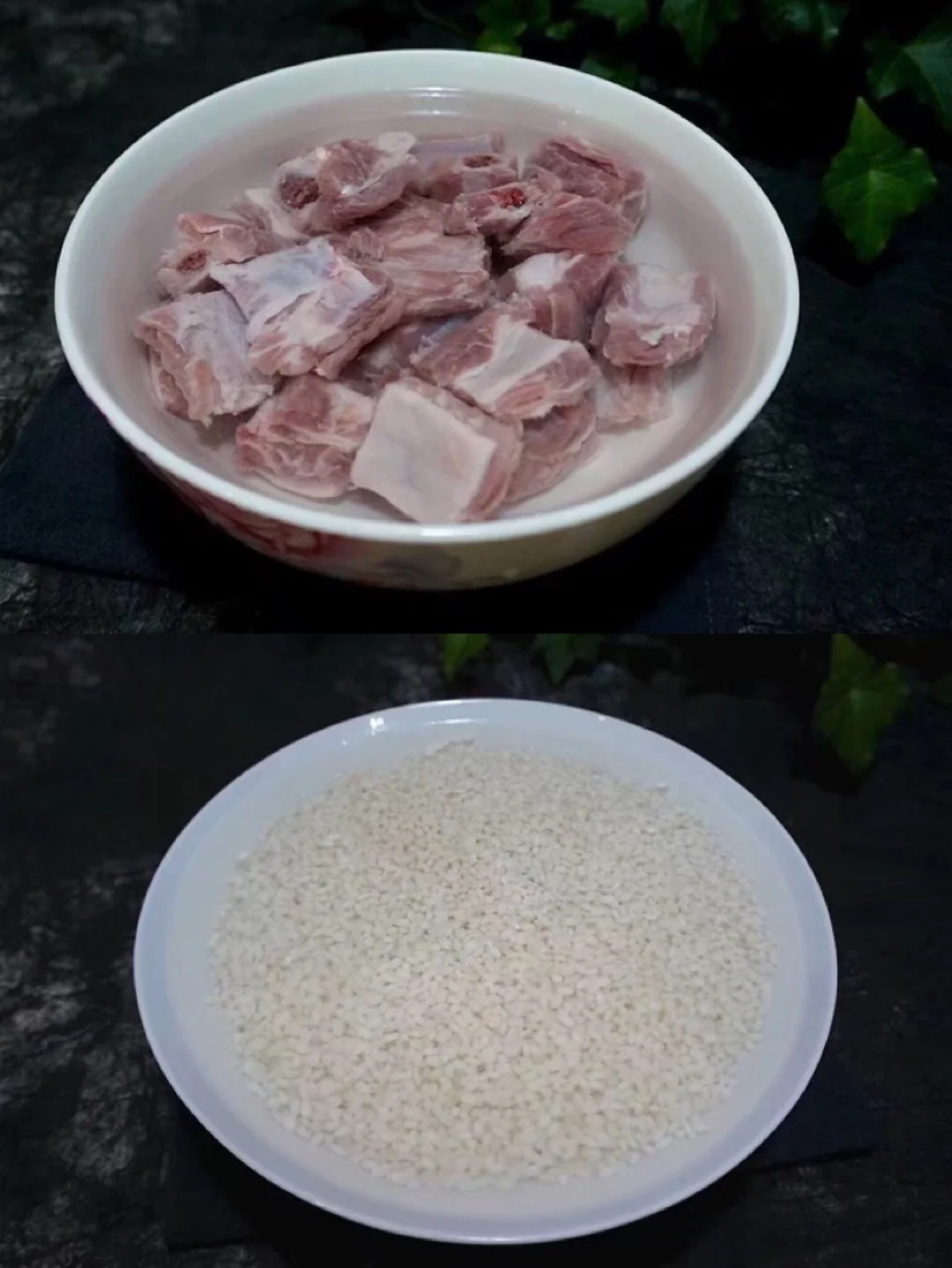 1.选用比较薄一些好一些的肋排比较好 【薄一些是为了更好的入味儿,剁的整齐一些摆盘好看啊】 洗干净杂质浸泡几个小时中间换换水,把血水泡出来 2.糯米提前一晚浸泡,冷藏过夜,虽然麻烦了一些 但是这样蒸起来更好吃啊