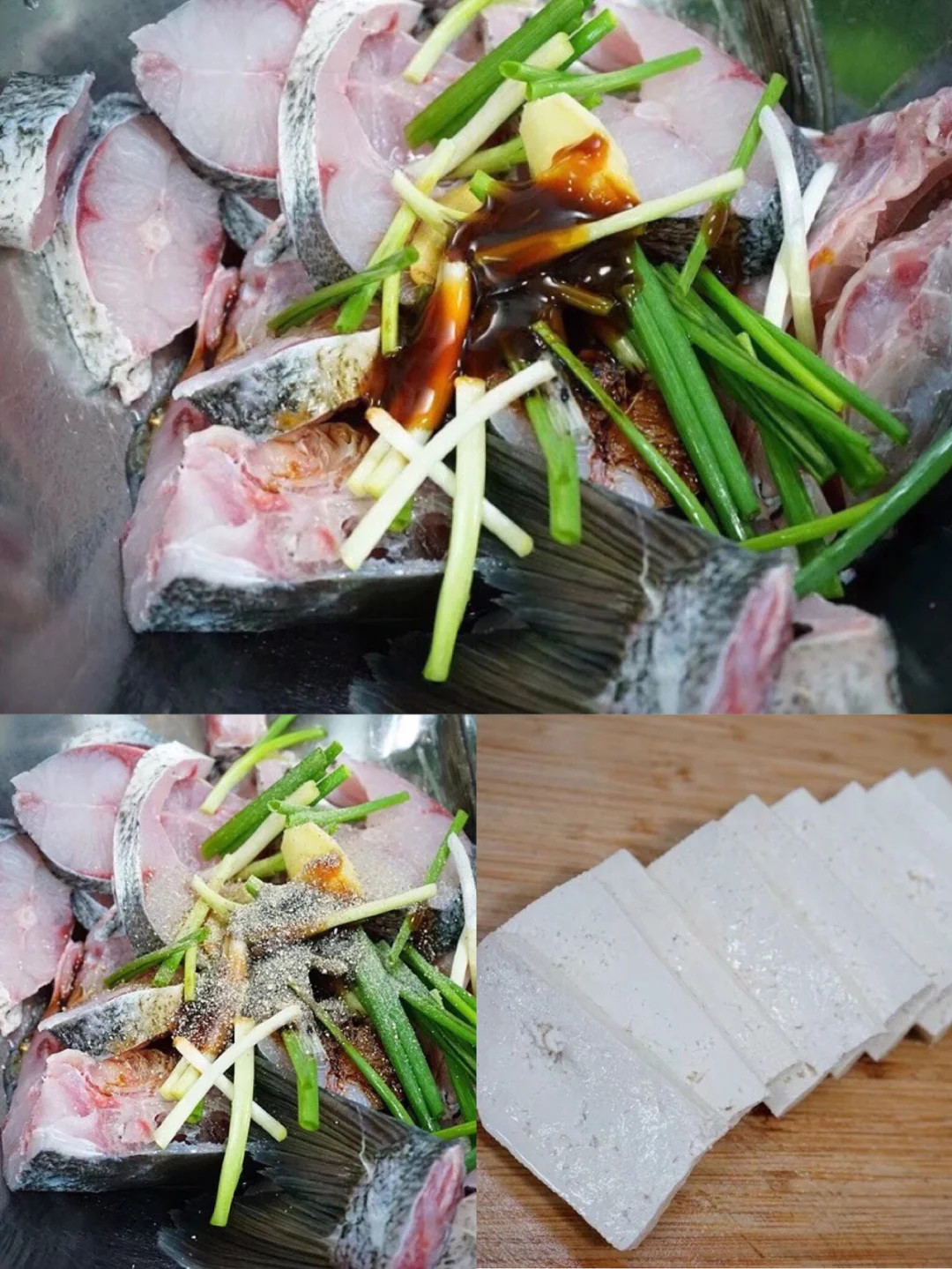 草鱼一条,豆腐一块儿,葱一把,姜一块儿,洋葱半个,生抽两勺,老抽半勺,蚝油一勺,料酒一勺,盐适量,糖半勺,胡椒粉适量