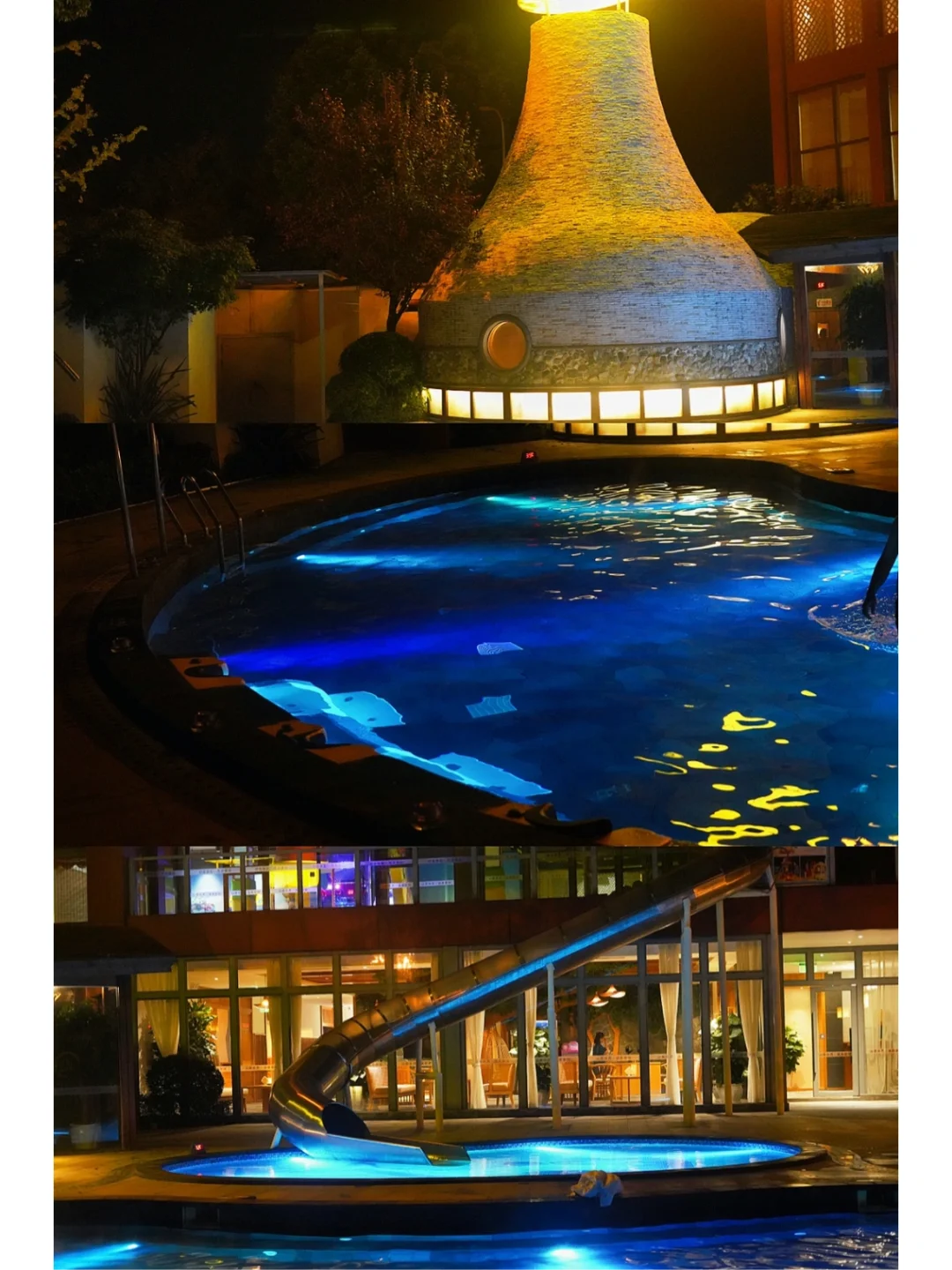 ⑤温泉:会开到22:30,玩了一天回来泡个温泉再舒服不过了,温泉区域划分也比较合理,除了大温泉池还有几个功能型的小池,比如艾草浴、中草药浴等,最有趣的是有个长滑梯可以从二楼滑进温泉池,胆子大的小朋友很喜欢,二楼还有小型海洋球池和电玩,一楼有喝茶休闲区域;