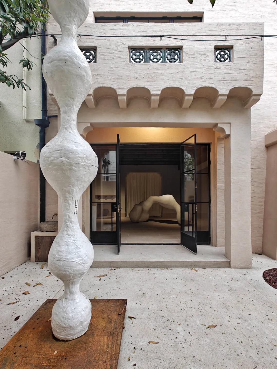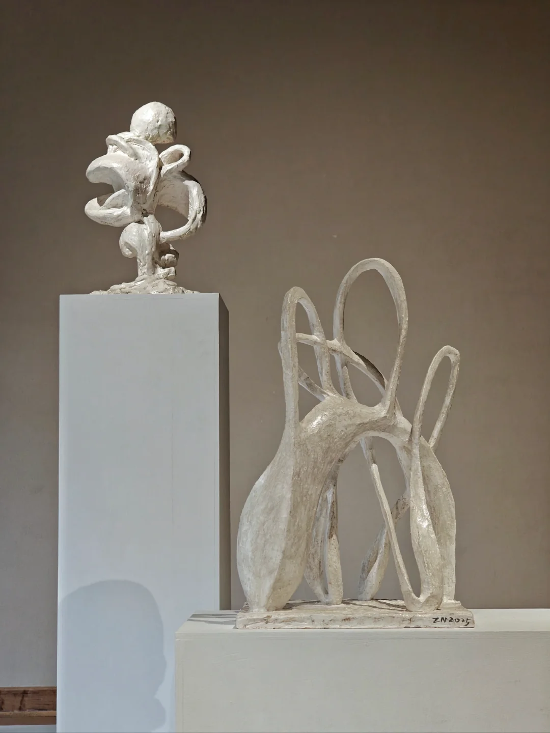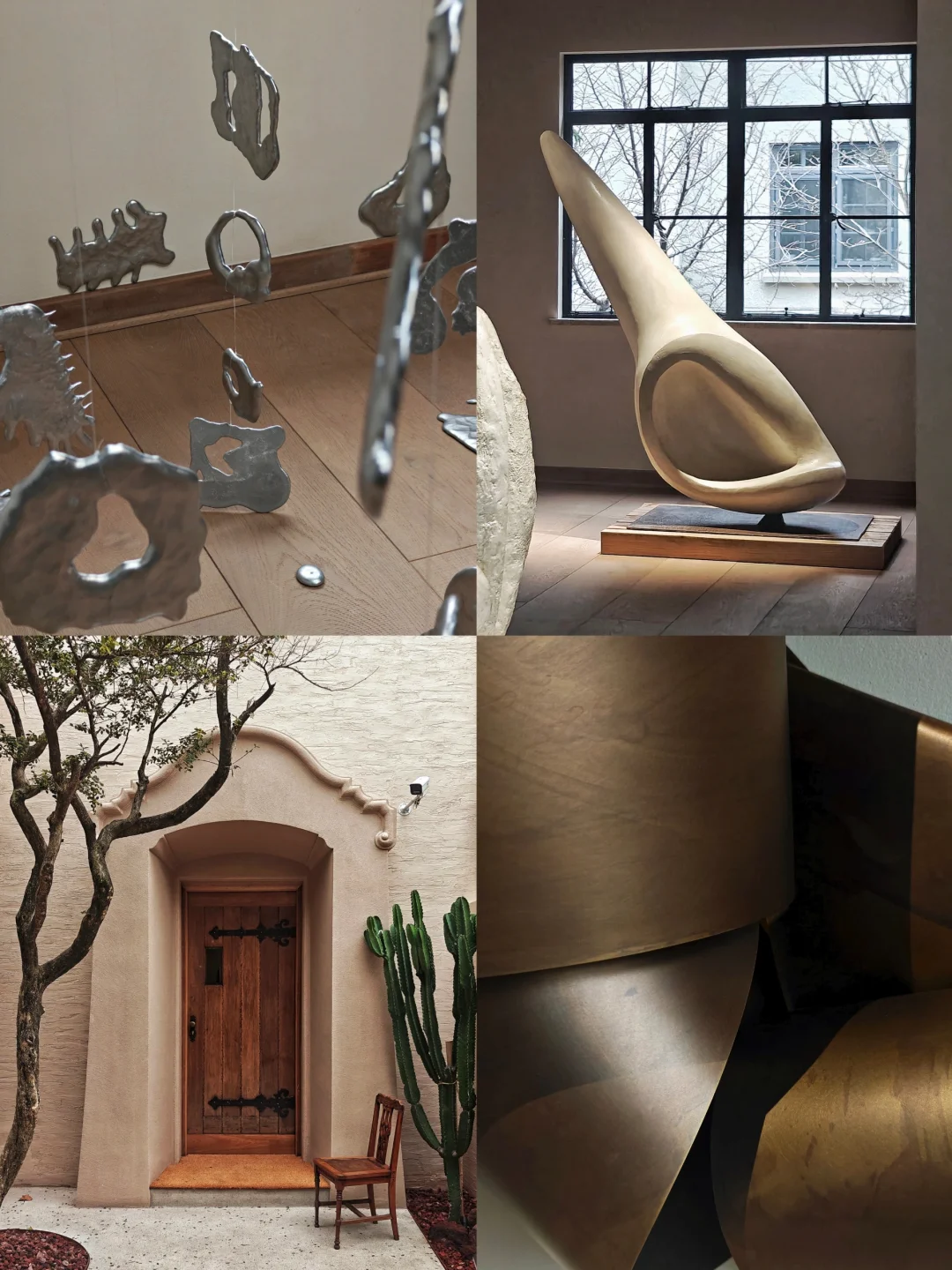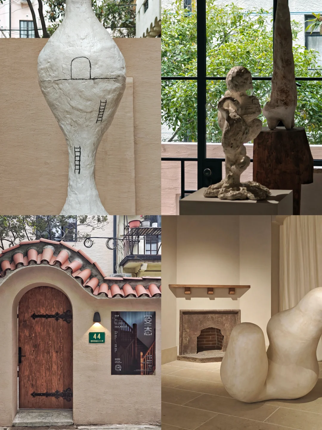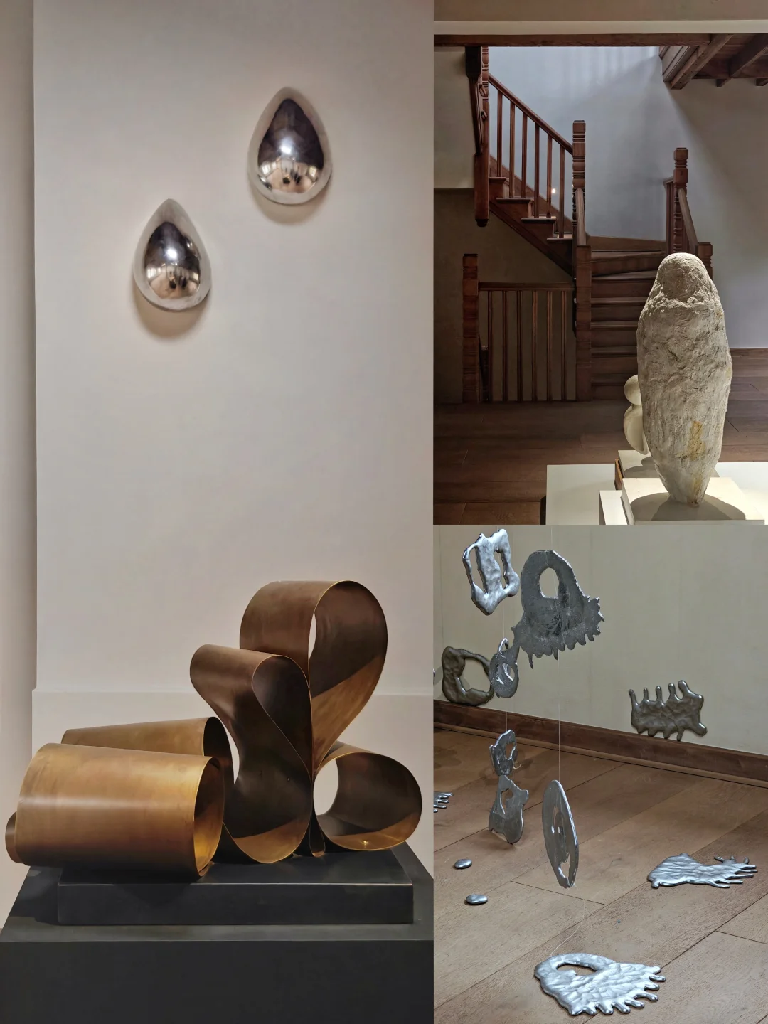 👉似乎从简洁又带有历史感的空间中,生长出有体量感的自然风格单色极简抽象雕塑。布展很克制,没有任何“多余”的东西,疏密得当,气场很和谐。