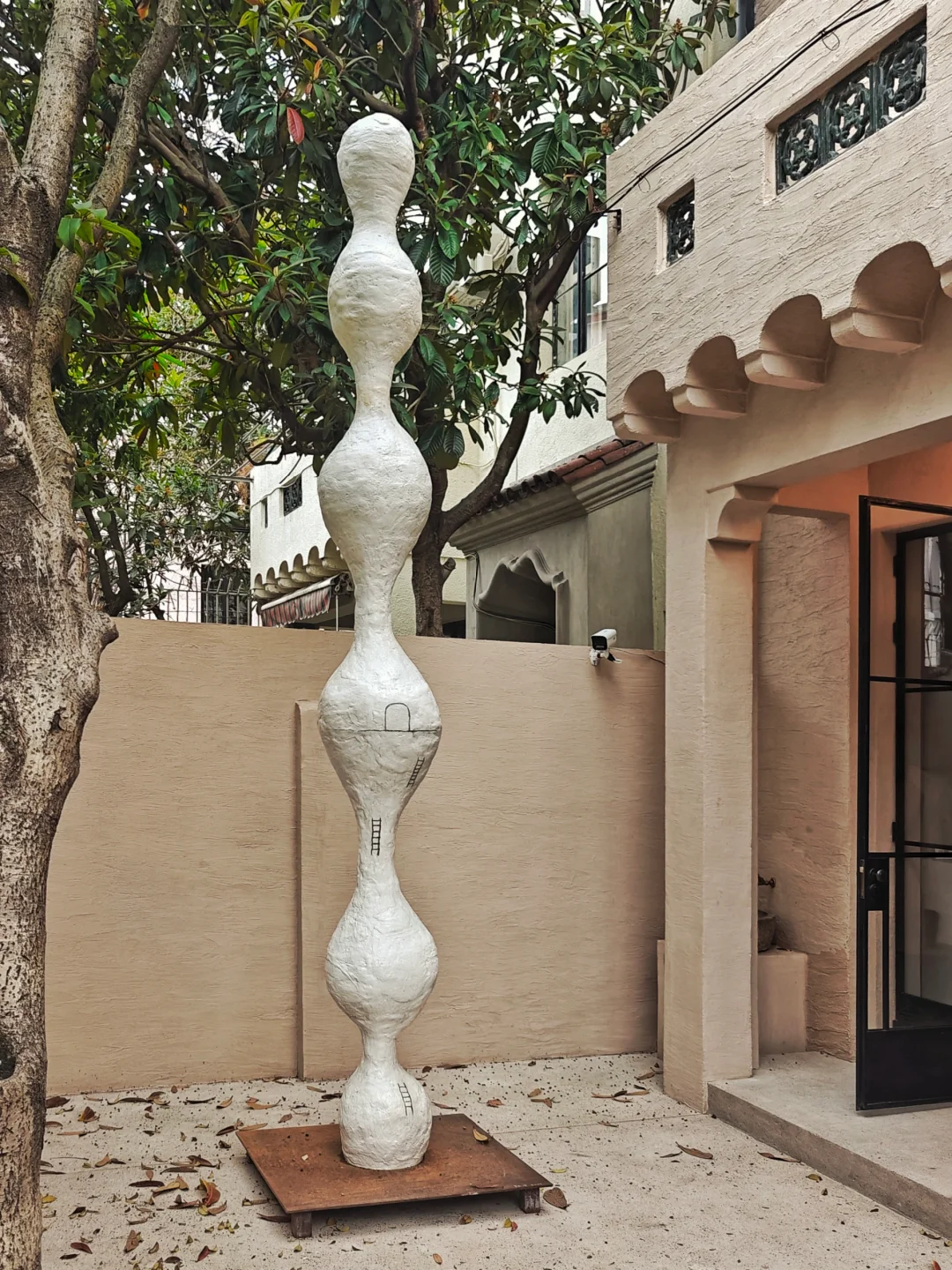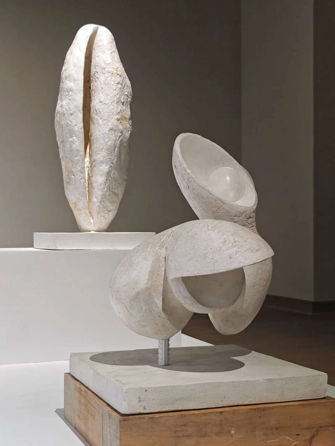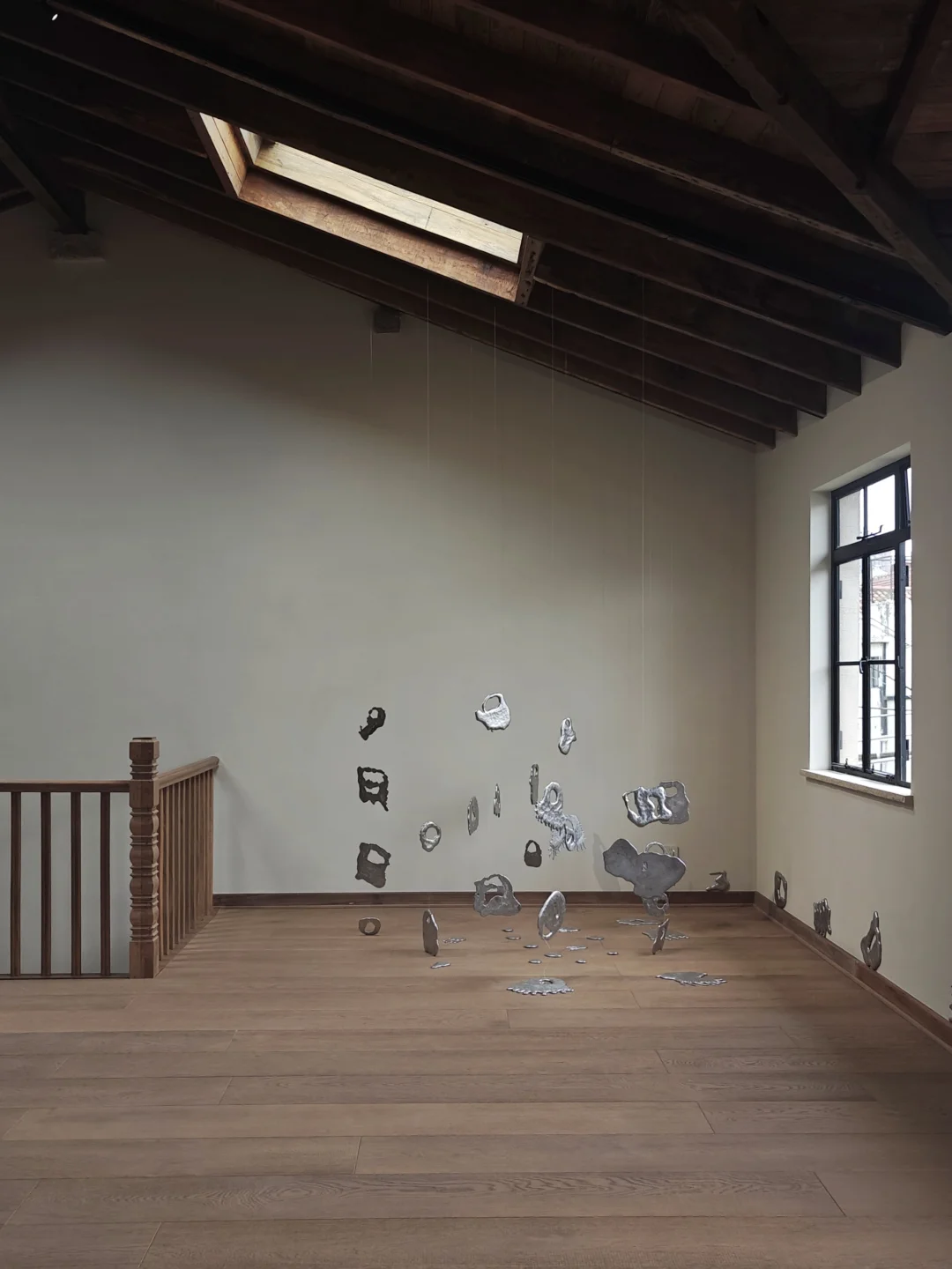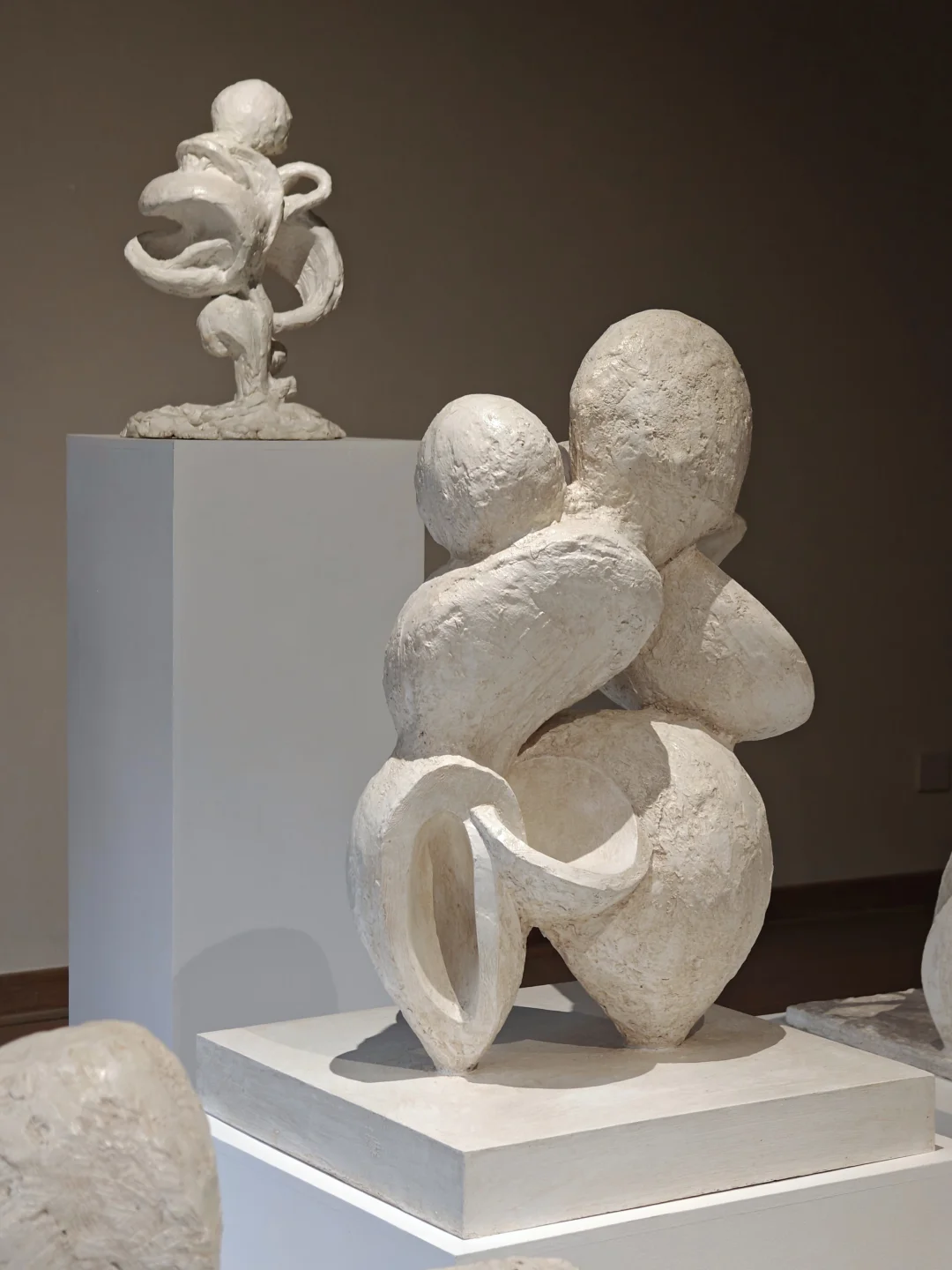 👉似乎从简洁又带有历史感的空间中,生长出有体量感的自然风格单色极简抽象雕塑。布展很克制,没有任何“多余”的东西,疏密得当,气场很和谐。