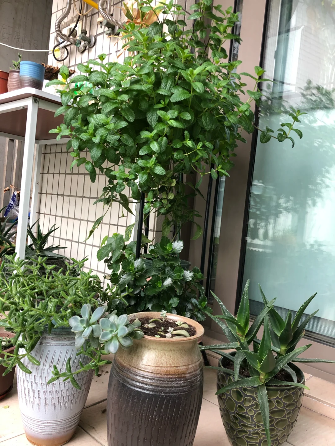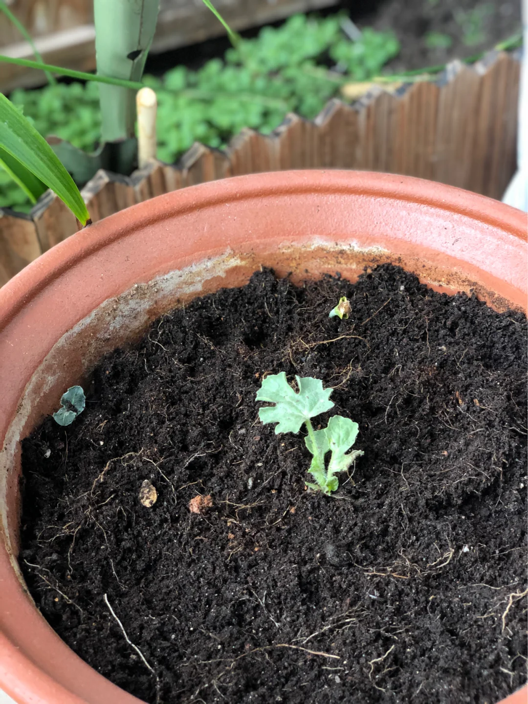 南瓜苗移植以后两个星期了应该没有问题了 图三那个辣椒苗去年种的冬天也没死,就没拔掉[偷笑R][偷笑R]薄荷真的是疯长啊,最后的泡沫箱昨天买水果,没舍得扔,准备拿来种点啥