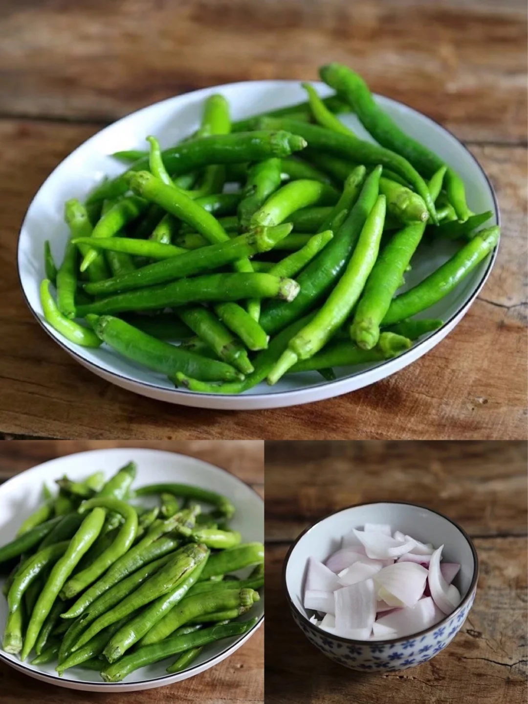 5.为了能更好的入味儿,辣椒用刀一一拍扁