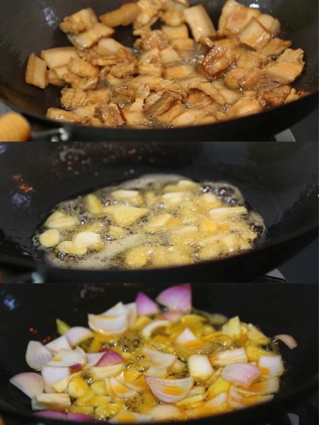 12.洋葱块丢进去一块炒,不需要炒的太软