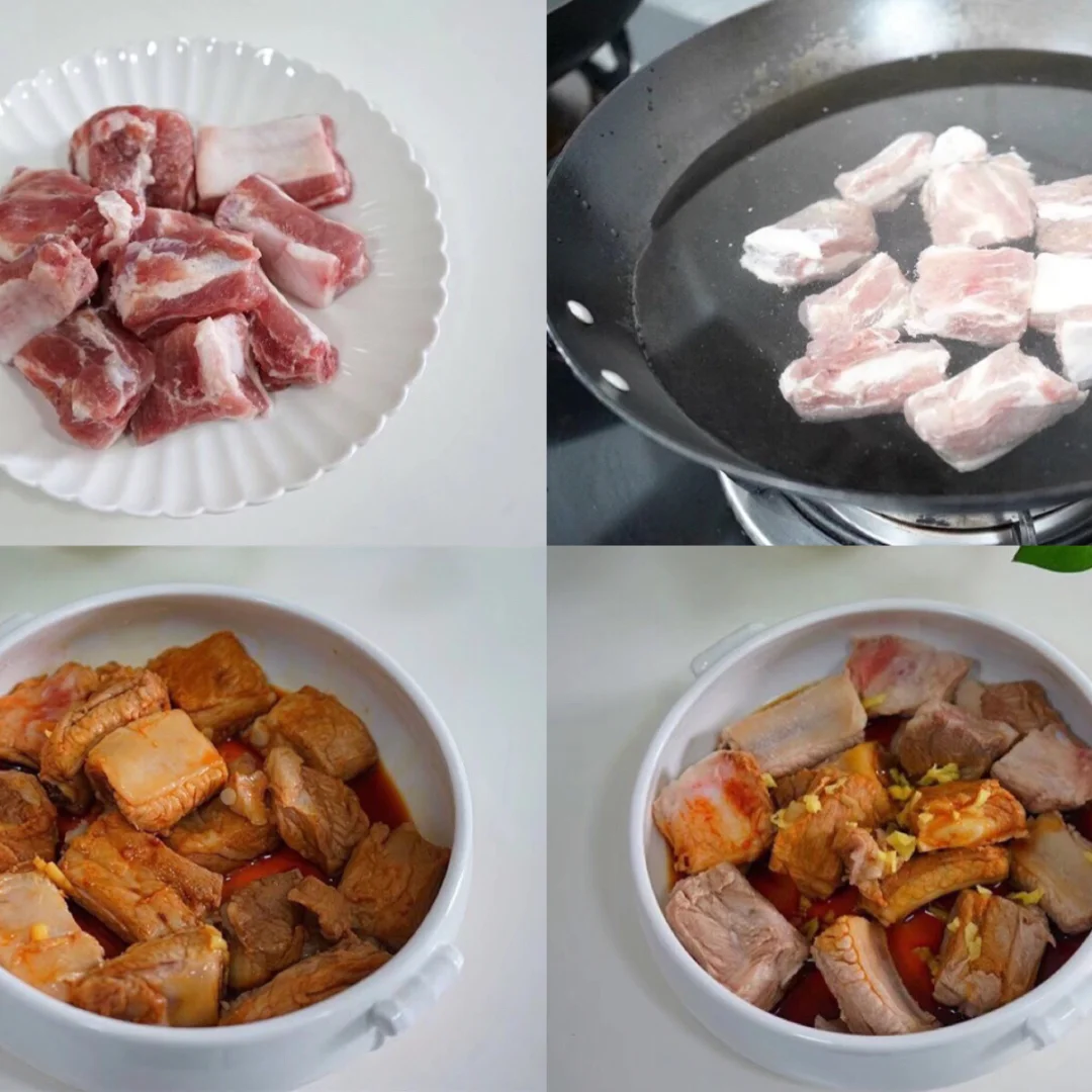 临时想吃就拿来做了这个,那样啃起来更过瘾哦 锅里上水,加入排骨,一勺料酒,煮开温水冲净浮沫,沥干水待用