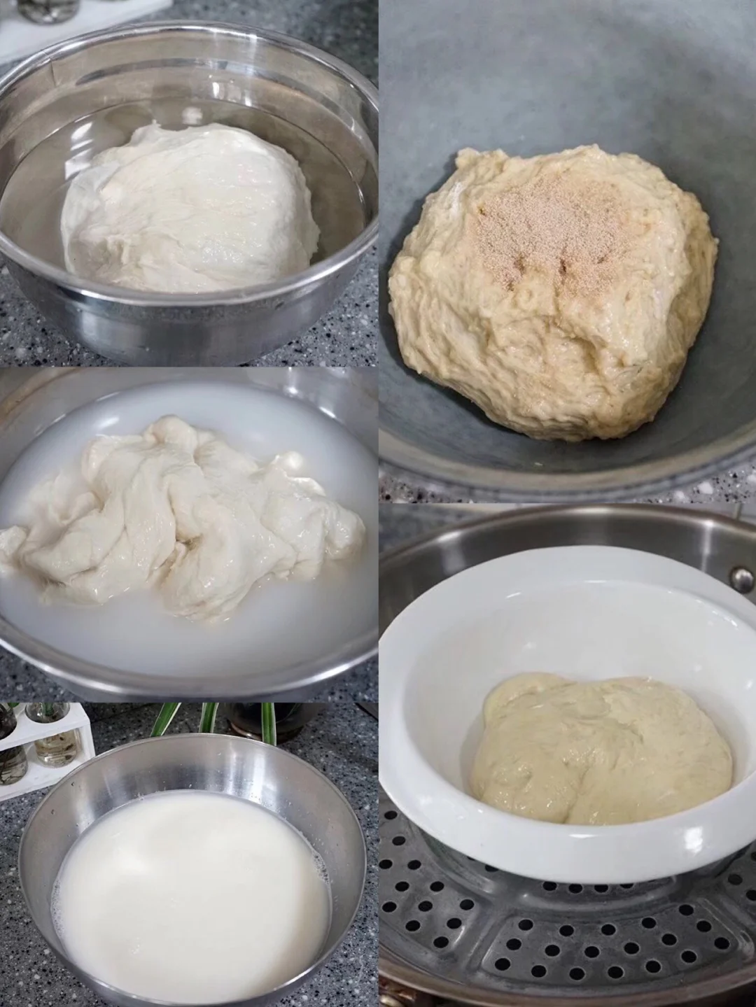 3.揉成偏硬一点的面团,所以水量控制,大概这样就可以啦