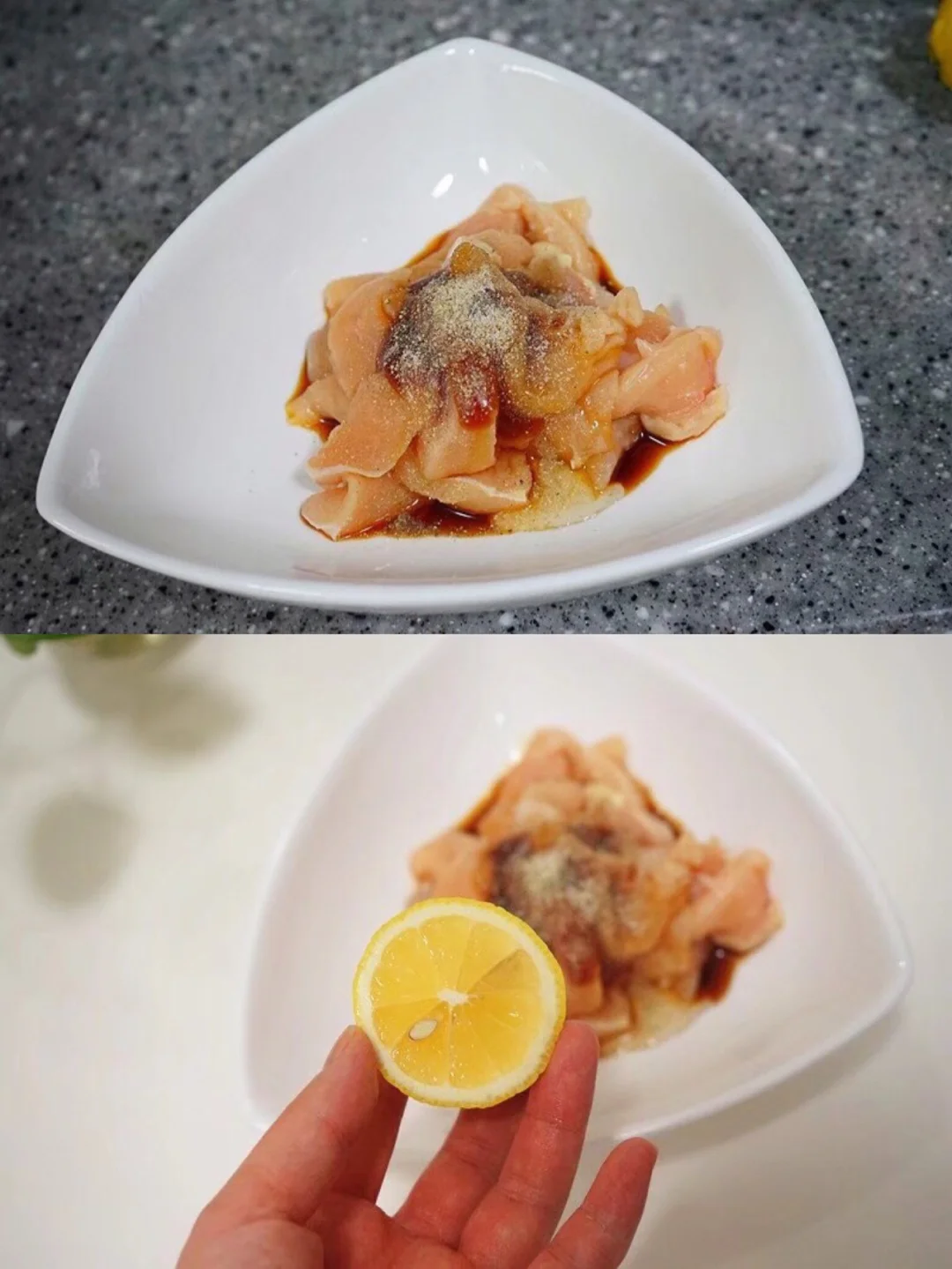 6.最后记得挤一丢丢柠檬汁,有提味儿去腥的作用 7.用手抓匀腌制十五分钟左右,如果早上没有时间提前晚上弄好放冰箱 早上煎一下即可