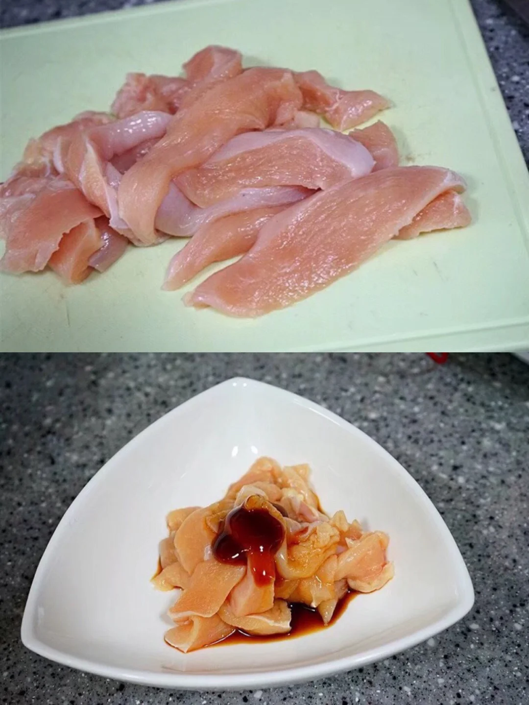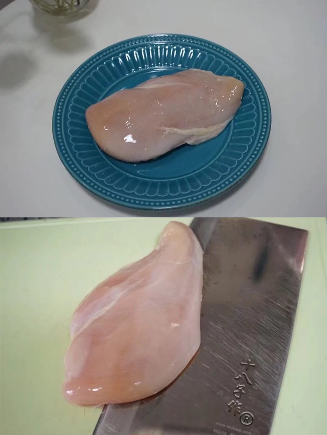 1.准备鸡胸肉一块 最好买那种新鲜的,冰冻太久的就别买啦,口感不好