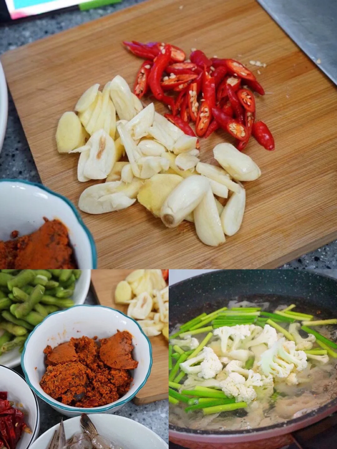 7.大蒜生姜切片,小米辣切斜段