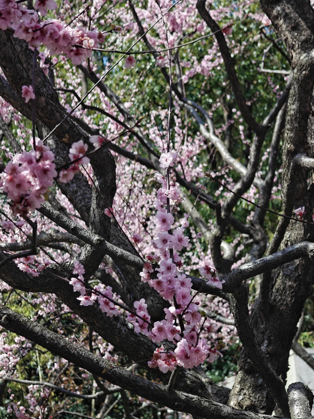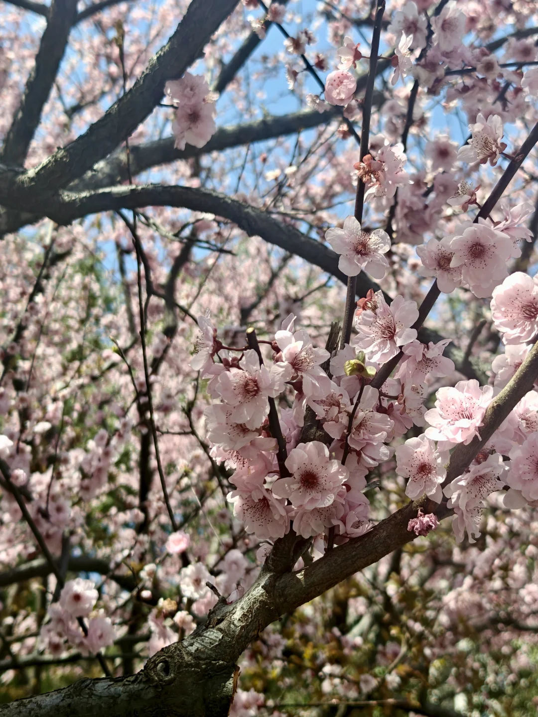 👉这里绽放的不是樱花🌸,而是美人梅,是重瓣宫粉梅与红叶李的混血儿,粉瓣如霞,既有梅之韵,又具李之秀,还有樱花的烂漫感。盛花期时无需绿叶相衬,满树繁花自成风景。