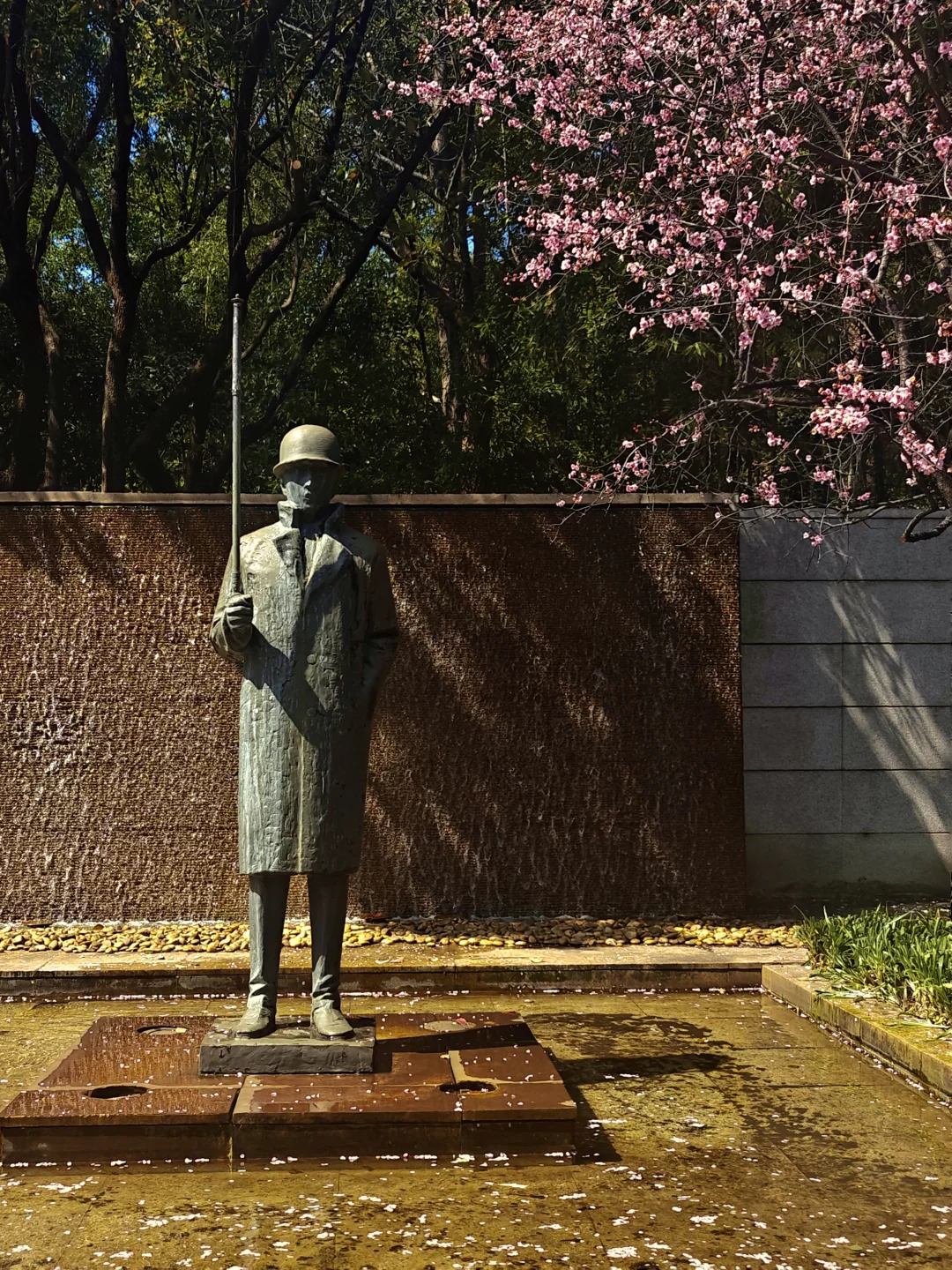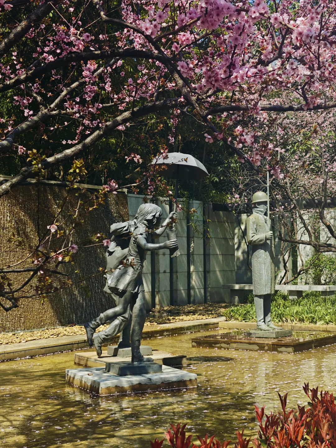 👉此处漂亮生动的城市雕塑与美人梅相映成趣。左侧的洋房为纪氏花园,原主人是江南公司老板陈咏仁(应叶公绰之约出资黄金300两赎回毛公鼎的那位)。上海解放后,这由振华小学作校舍使用,后为北京西路第三小学,在静安区文化局办公所用之前,曾是静安区少年儿童图书馆。