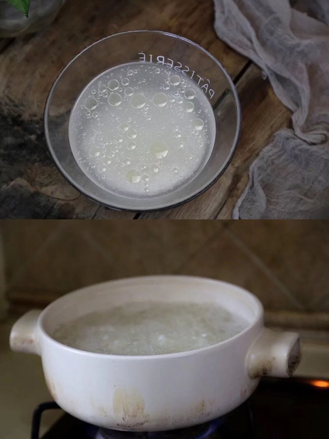 2.锅里上水烧开,砂锅煮的话水稍微多一点 加入米大火煮开以后装中小火