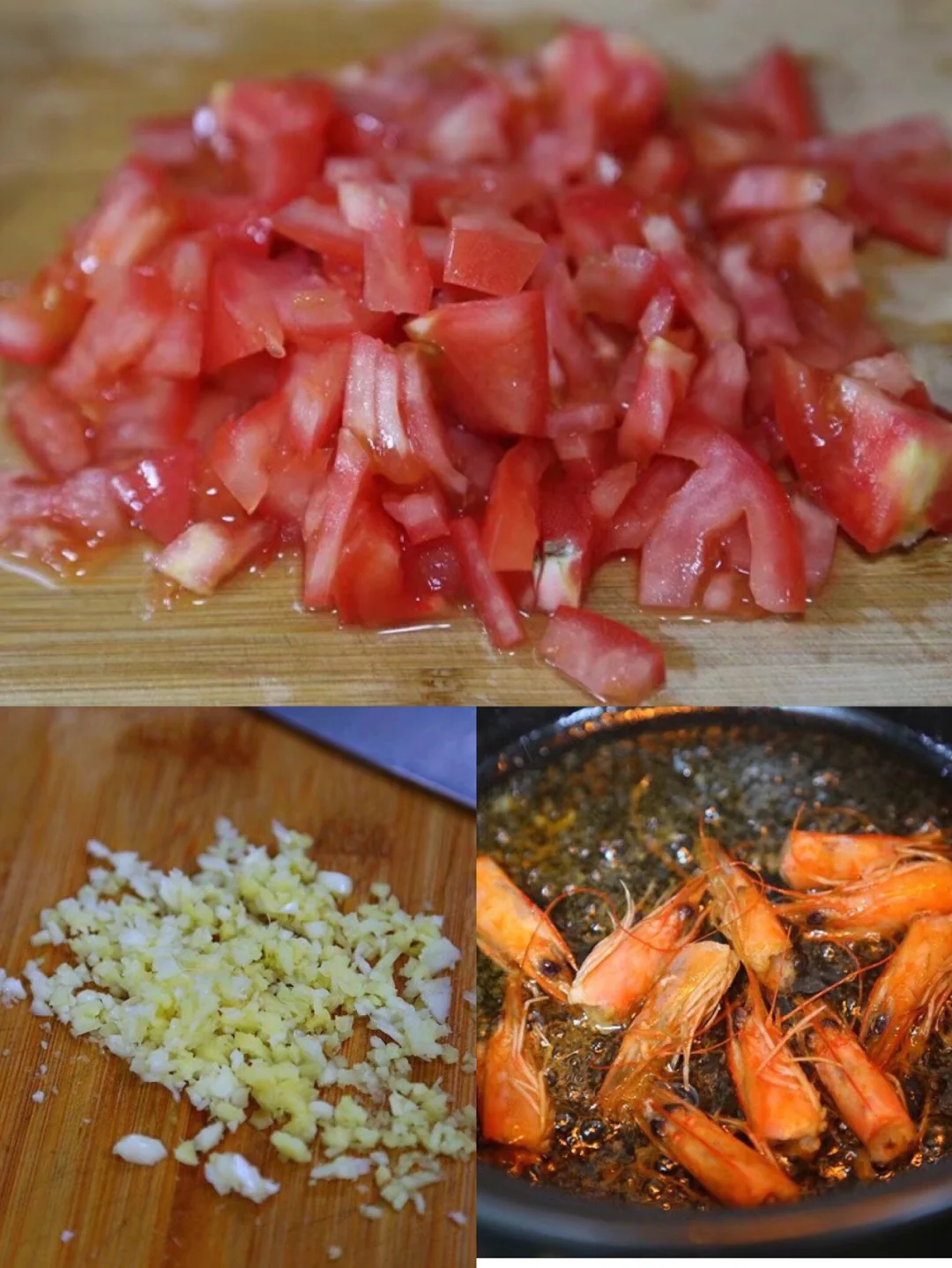 10.好了以后虾头捞出来丢掉,生姜大蒜沫继续小火慢慢扁炒香