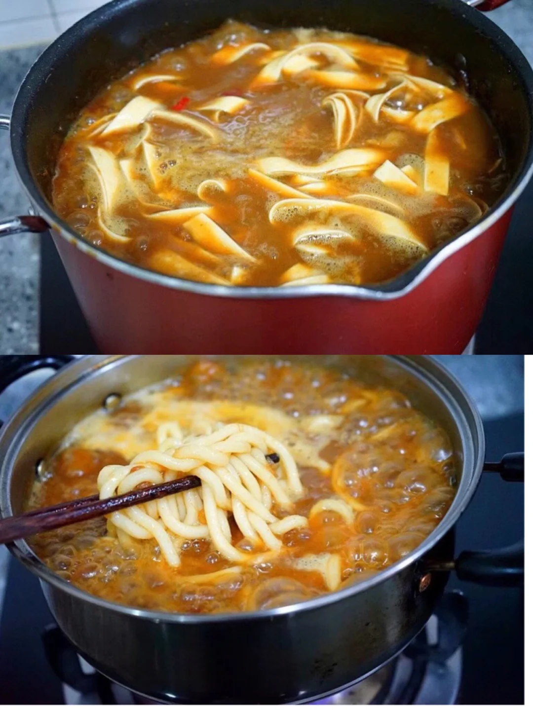 17.拍完照赶紧多加了两大勺咖喱汤,几大口下去,太爽了 对于无肉不欢的我而言 一盘下去全身舒坦啊 18.咖喱面很简单,剩下的咖喱汤第二天加热之后倒一些开水 可以尝一下缺什么味道就加一些 汤开之后加面煮熟就可以啦 我加了点日本的材料,你们一般也用不到就忽略吧