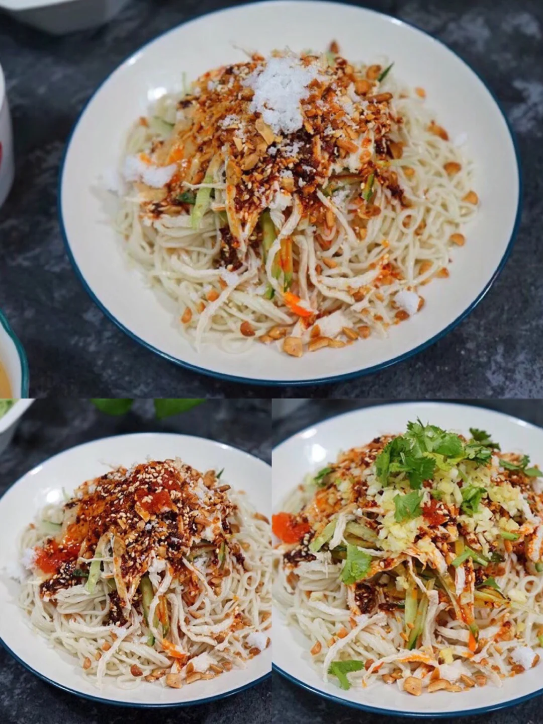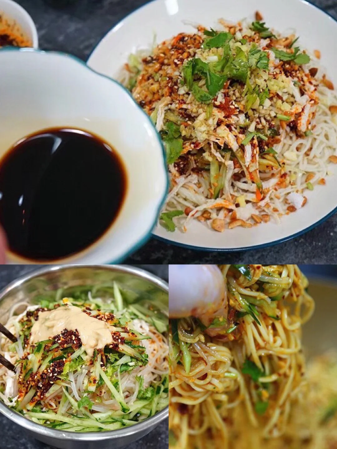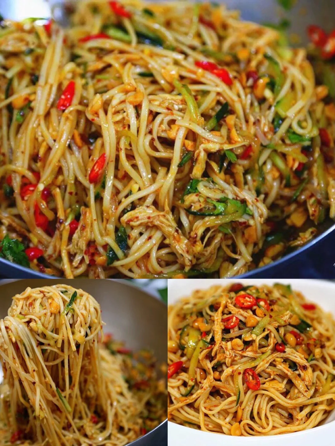 19.三大勺刚刚做好的辣椒油,花生碎 食用盐,少许糖 20.少许芝麻油,鸡粉,
