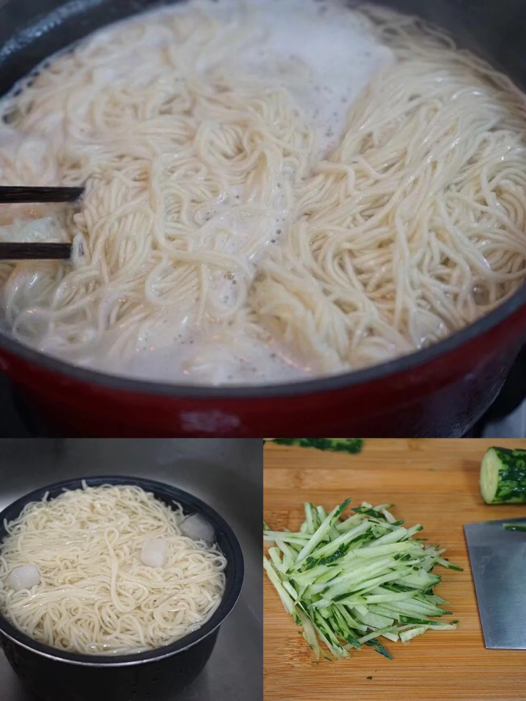 10.捞起来冷水里冲一下立马放冰水里 这样面条会更有韧性哦