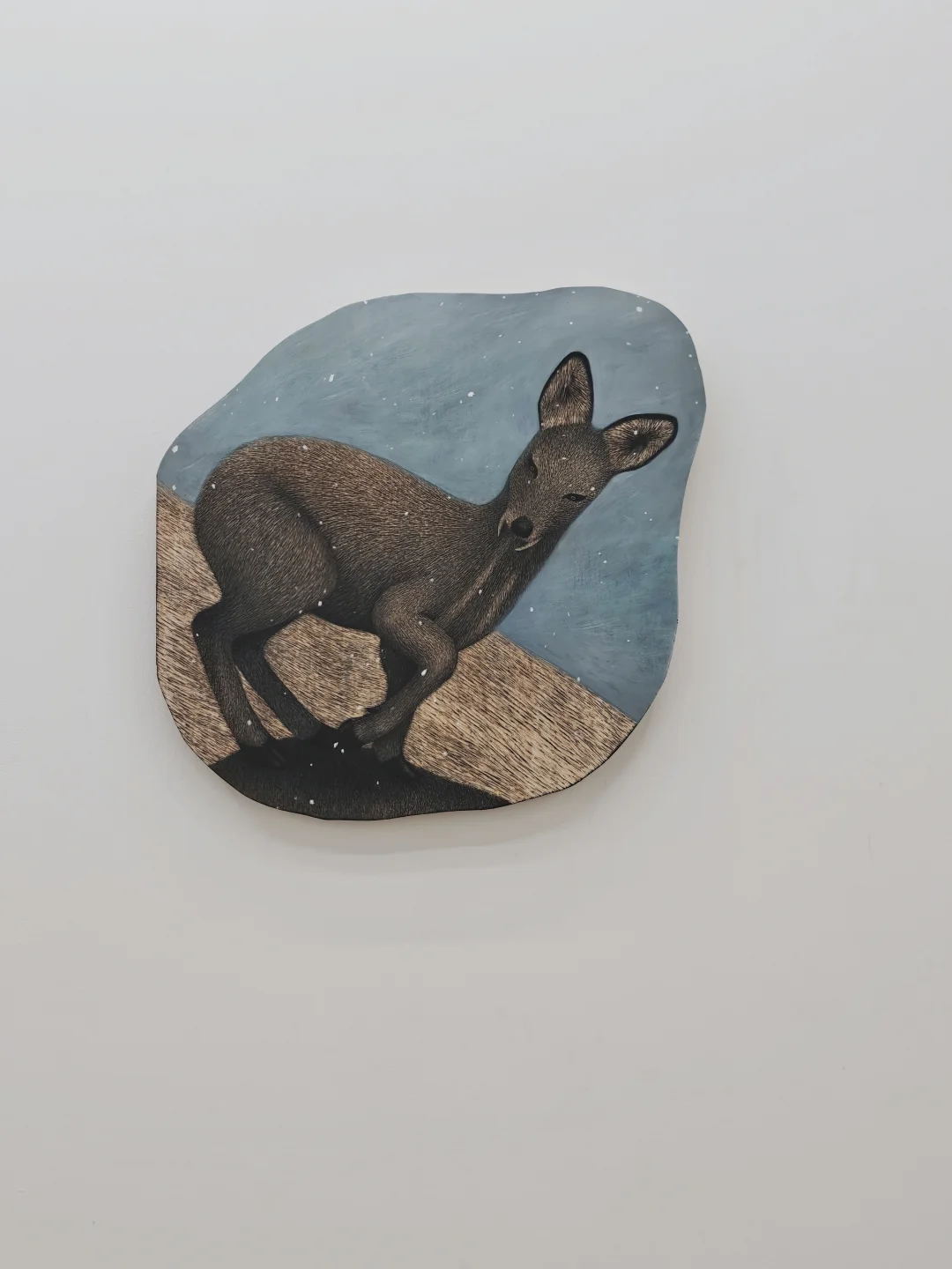 以木板为底,先墨染出层次底色,再用特制刻刀刻画细密条痕。依条痕疏密、粗细勾勒动物轮廓与动态,精准呈现肌肉毛发质感,借木板墨刻凸显动物生命力,让静态画面满溢蓬勃活力。
