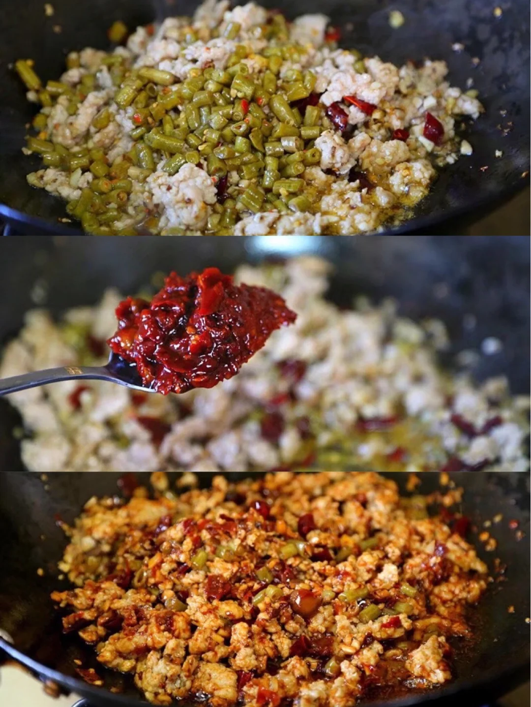 12.如果家里有酸豆角的话放一丢丢进去会更开胃哦,没有的话就不用放也没事哦