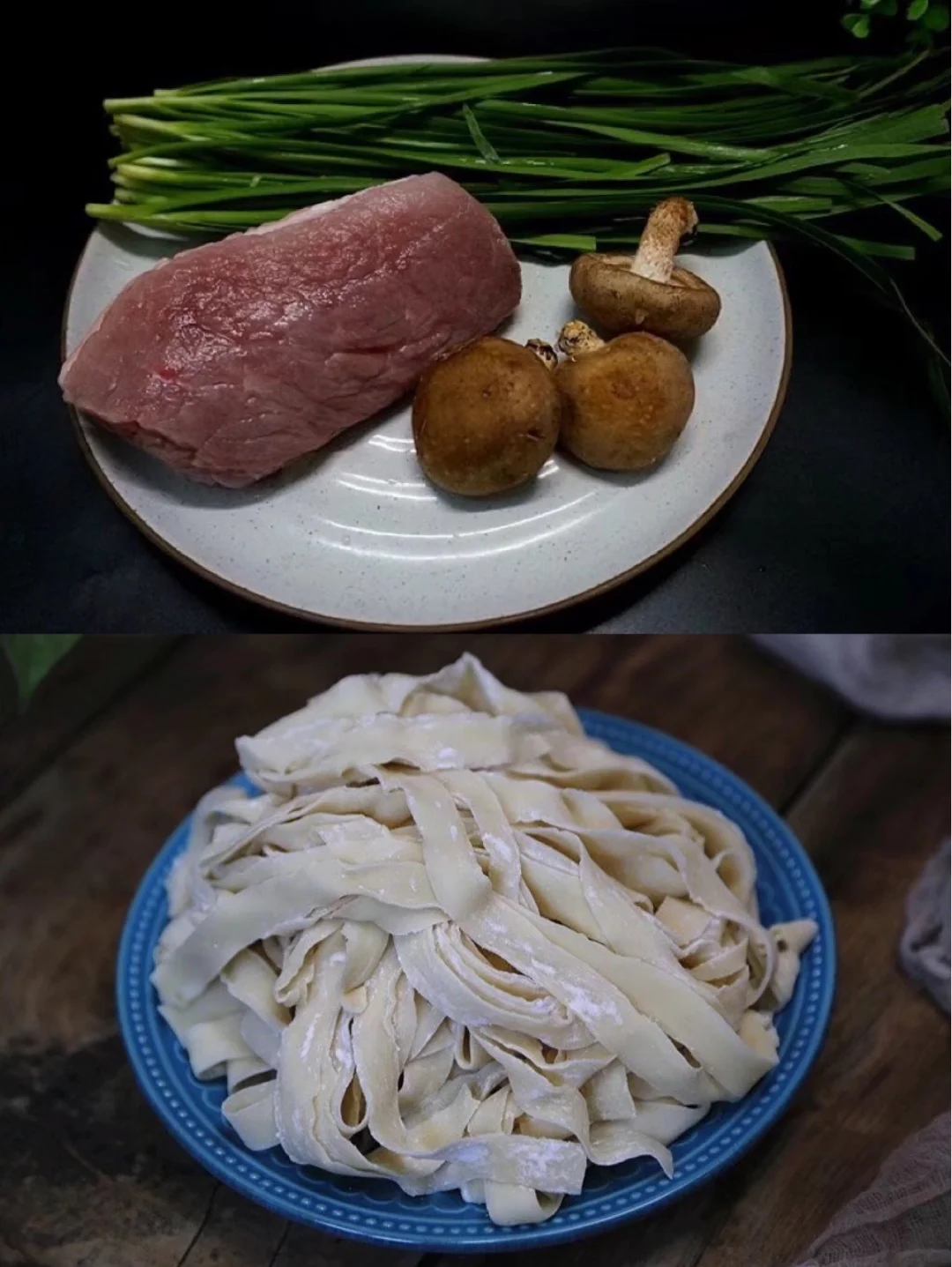 1.准备好所有需要的食材,其实至于肉么肥瘦相间的其实更香,只是我不太喜欢肥的,就全部用瘦的了2.面条是菜市场买的,今天买的是这种宽宽的,特别好吃,你们也可以去菜市场找找肯定有卖这个的
