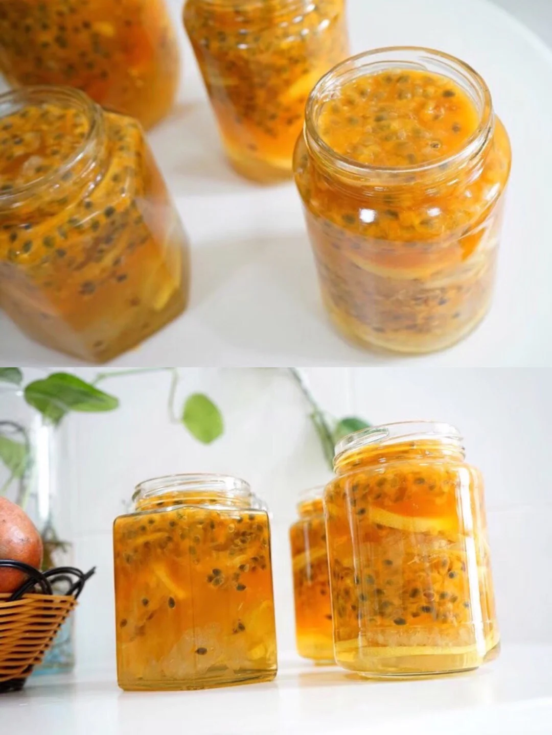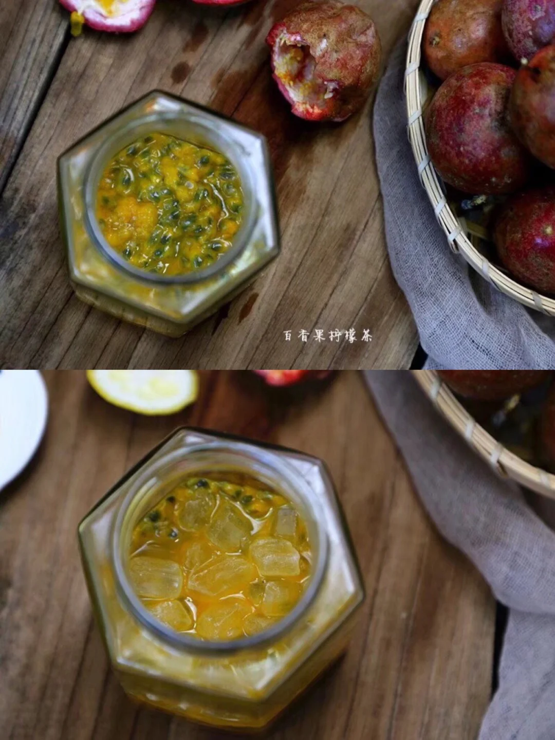 5.我总共切了两个柠檬,记得要去籽,不然会发苦 6.拿来装的瓶子记得一定是无油无水的 提前清洗干净吹干 下面我们开始来装瓶 顺序是:蜂蜜----柠檬----百香果----冰糖----蜂蜜