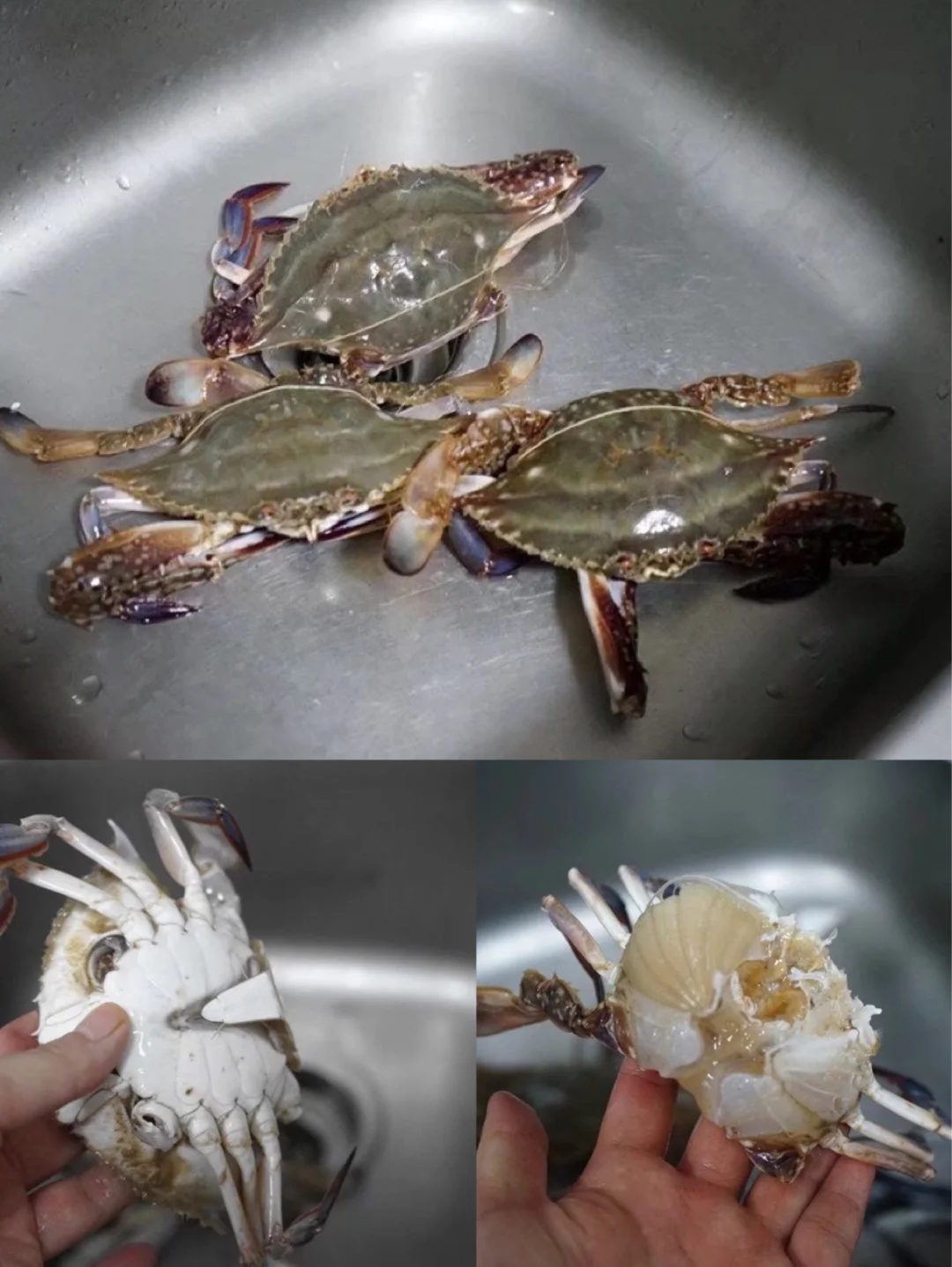 1.现在正是吃蟹的季节,都挺肥美的 买的是梭子蟹2.现在我们开始来清理蟹,看到了吗,肚子上这个要去掉