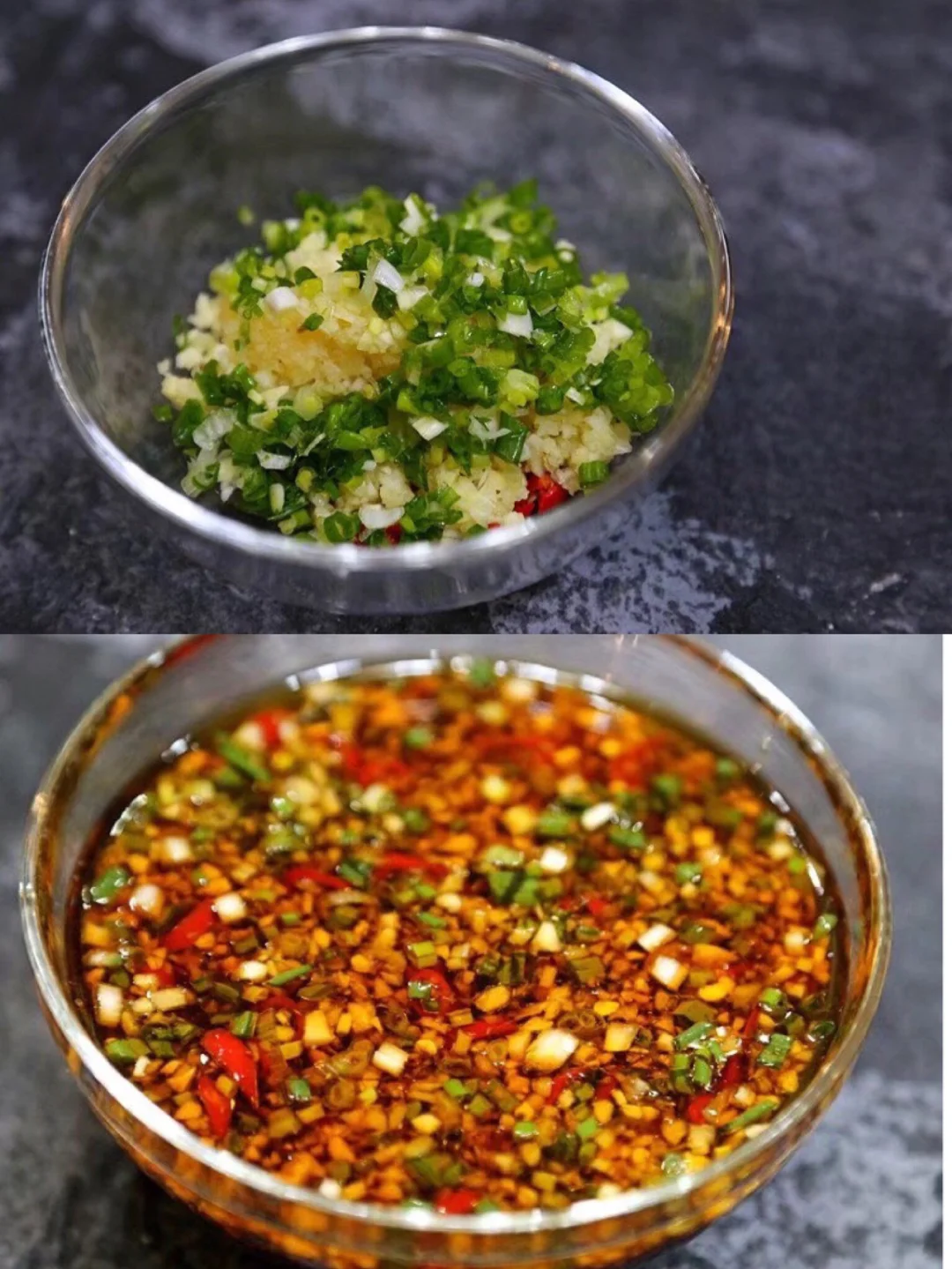 18.调好的料汁儿用勺子慢慢的均匀的撒上去,为了拍照好看 所以没敢撒太多,主要怕到太多一是不好看 二会太咸 可以吃的时候直接夹起来蘸料吃也是一样的哈,这样看起来是不是更高级