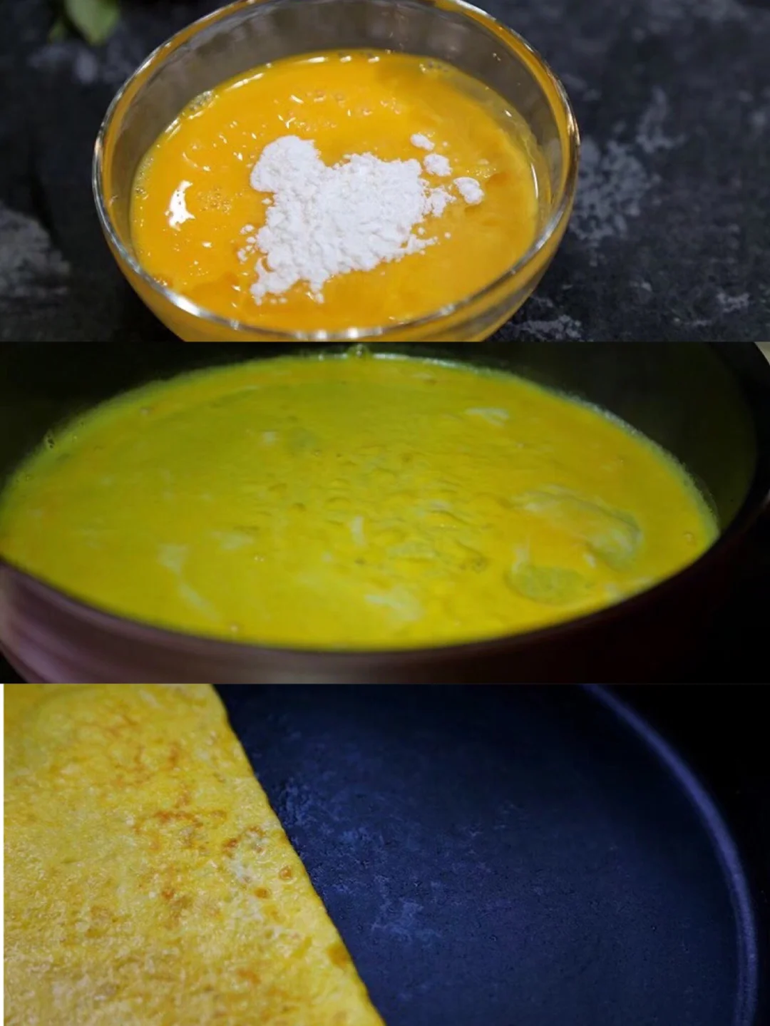 8.三个鸡蛋打散,加入适量生粉继续搅匀