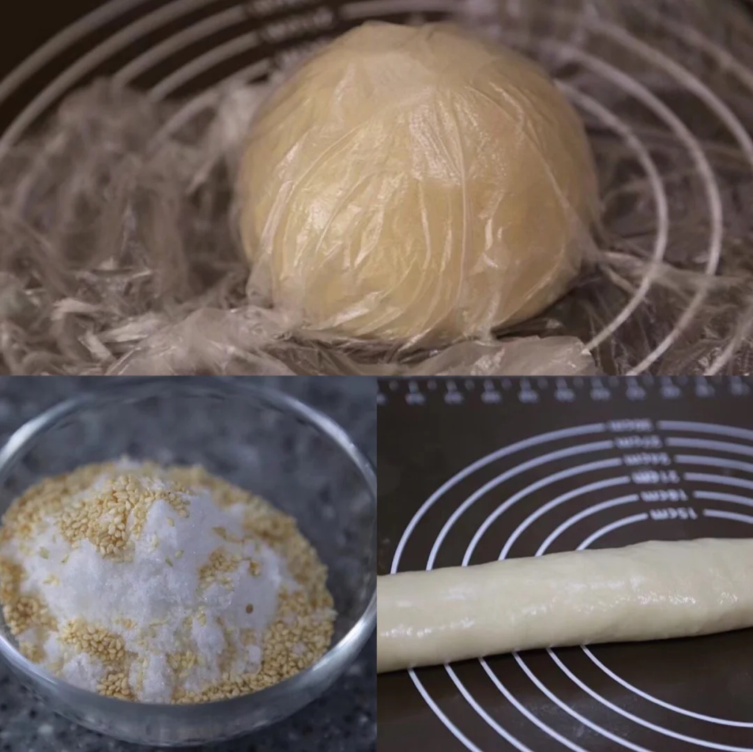14.全部放在抹好油的垫子上哦,不然后面你去拿粘住了一拉就破了
