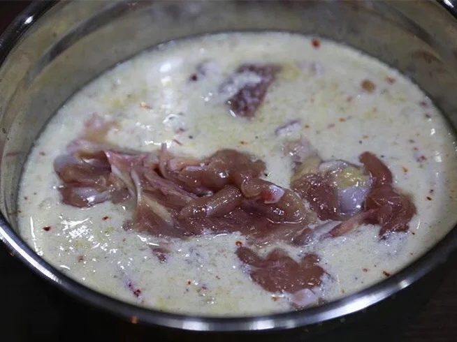 加入鸡块,用手抓匀,盖上保鲜膜放冰箱腌制一碗