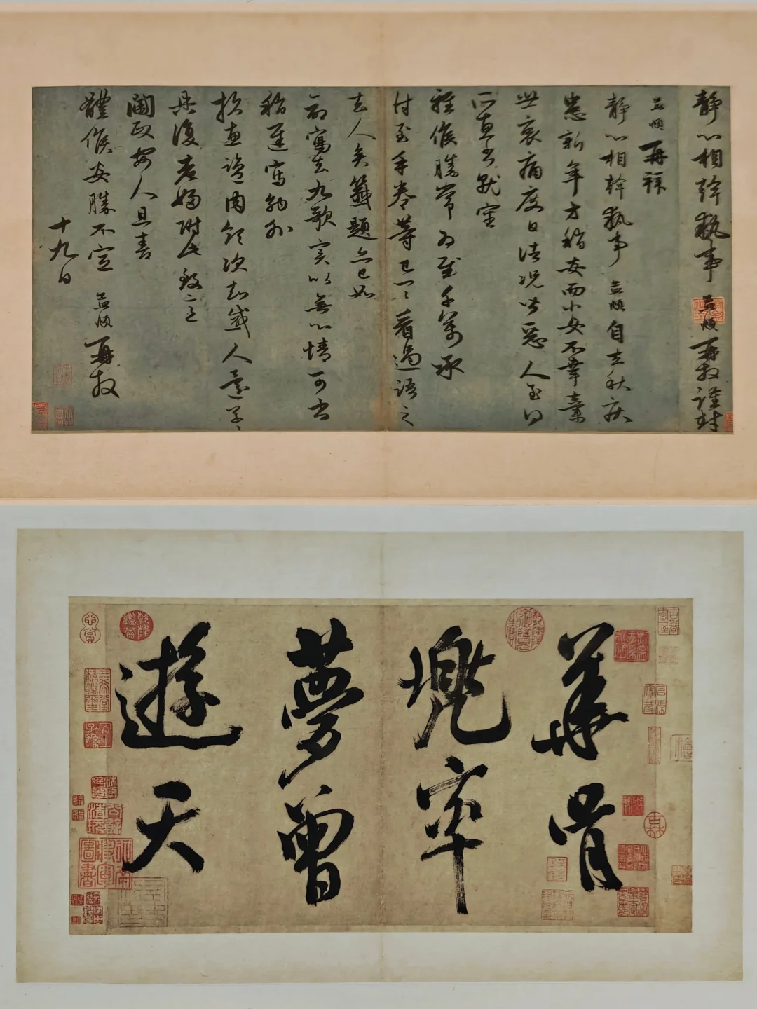 🔹行书多景楼诗册:米芾晚期代表作,用笔老辣、厚重,间架欹侧中见稳健,豪放且笔力雄伟