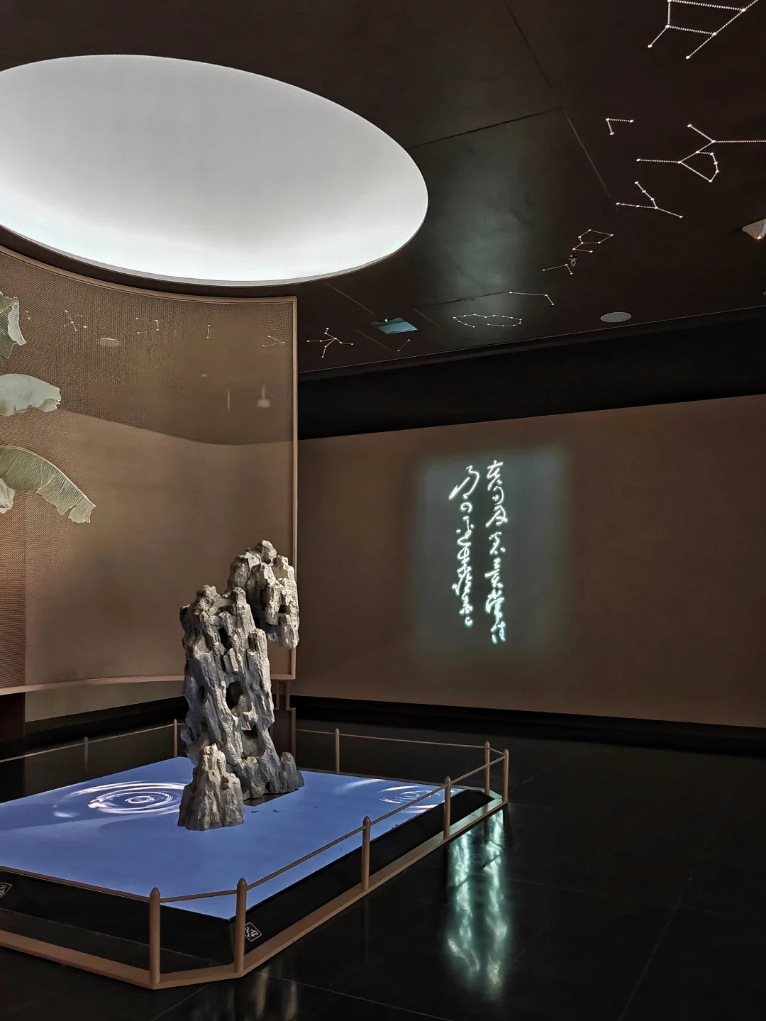 🔹一公里观展动线,“书画馆八景”串联其间。书法馆入口种蕉厅受怀素故事启发,借芭蕉树影、太湖石与 LED 屏营造意境。秉持传统与创新理念,融入园林元素与江南、海派文化,强化书画表现力。小品景观源自馆藏书画元素,拉近人与物距离