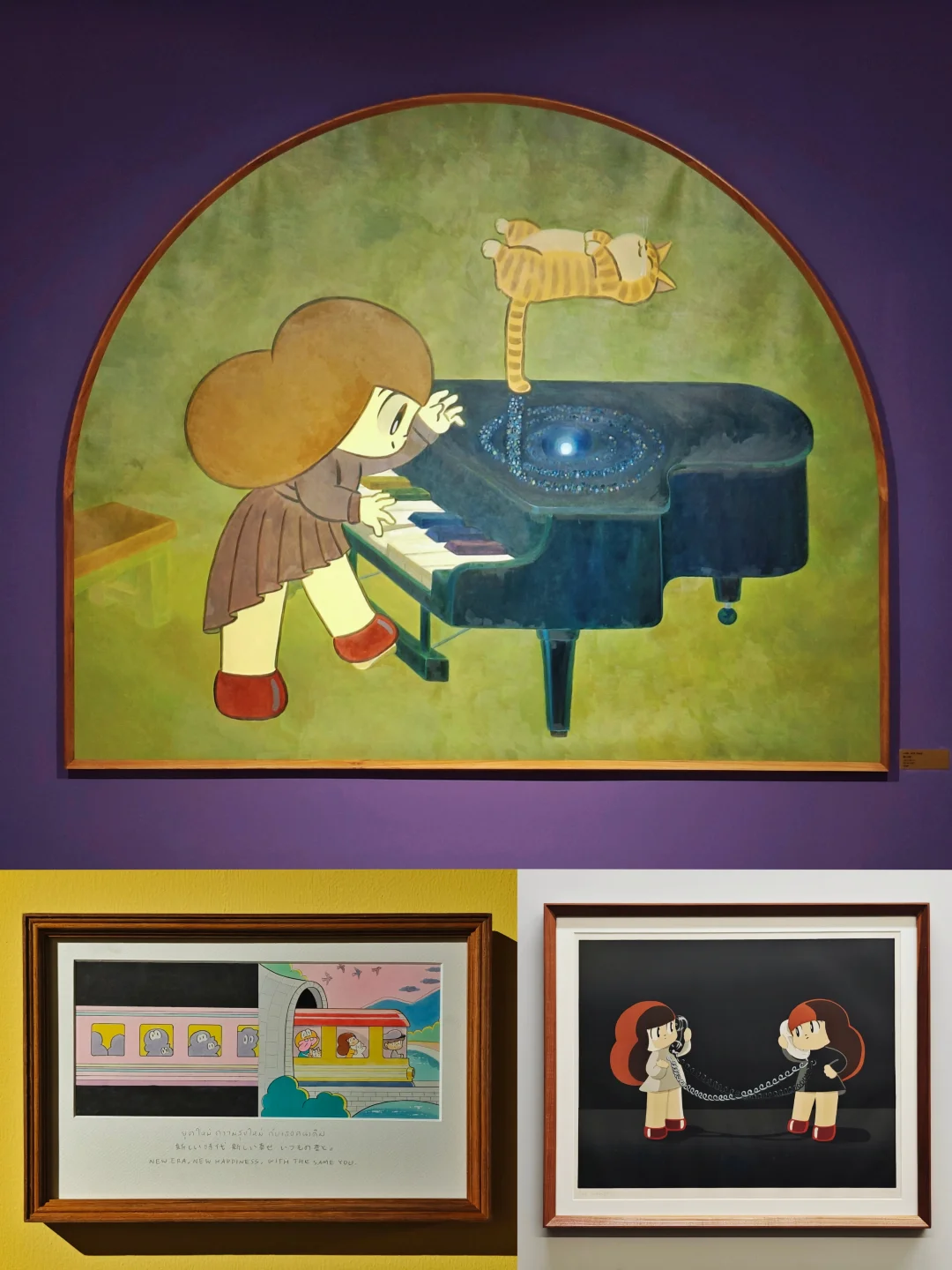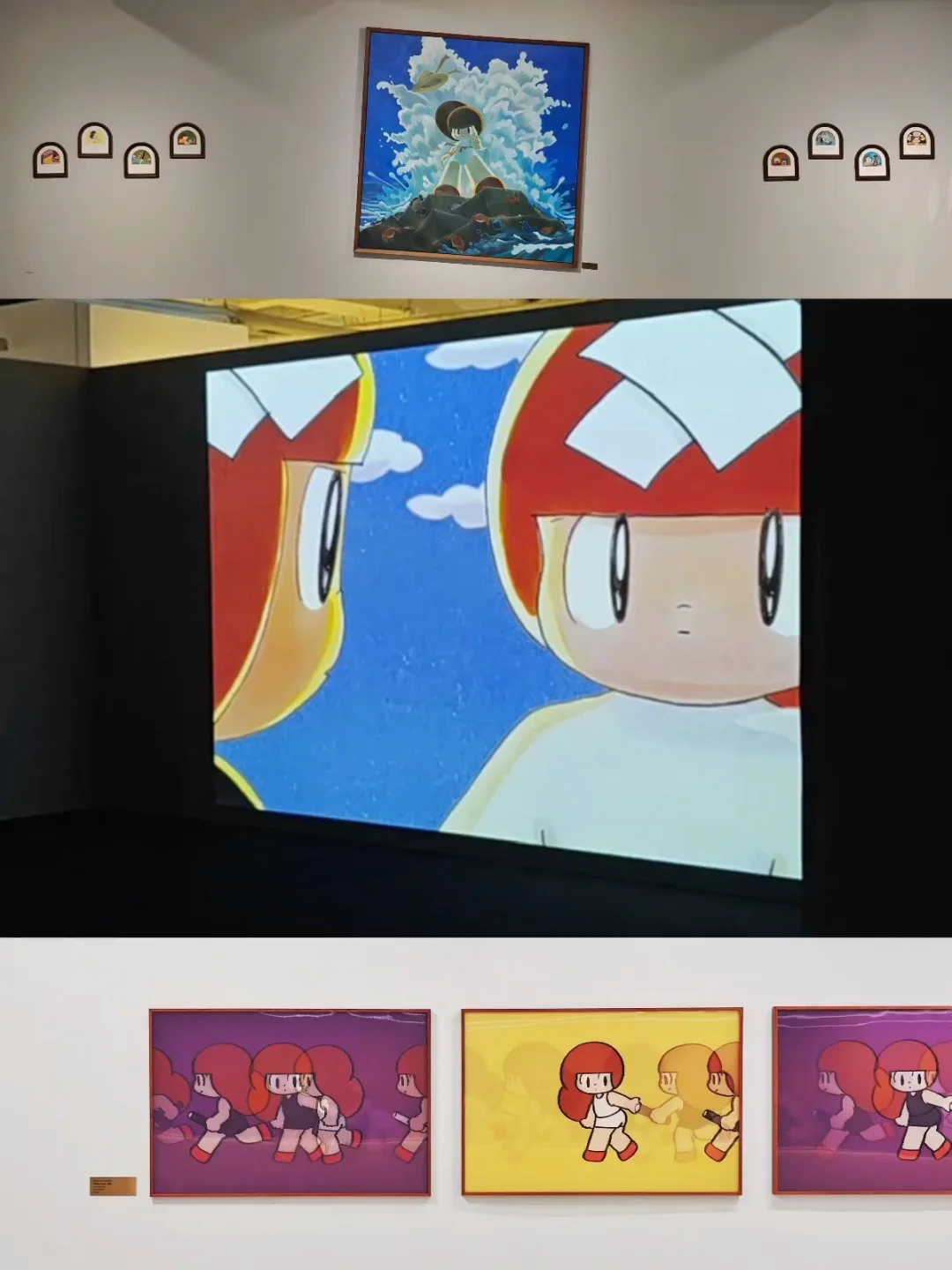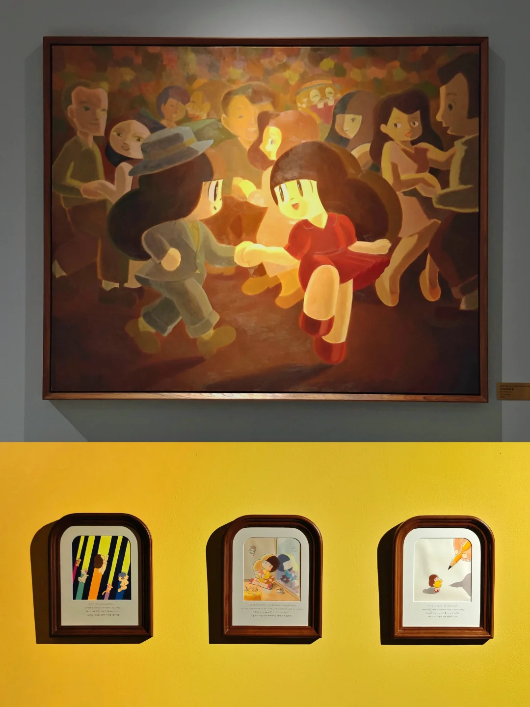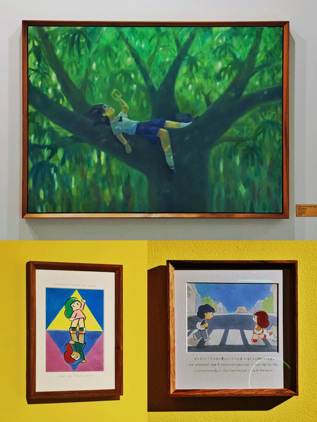 🖼️还有一系列小幅单张作品,用一幅画面来表达一种日常瞬间,特别的是画面下方都会用2种以上不同语言的“一句话描述”作注释,有日语、韩语、英语。另外还有一间影像室播放相关的动画作品也不要错过哦。