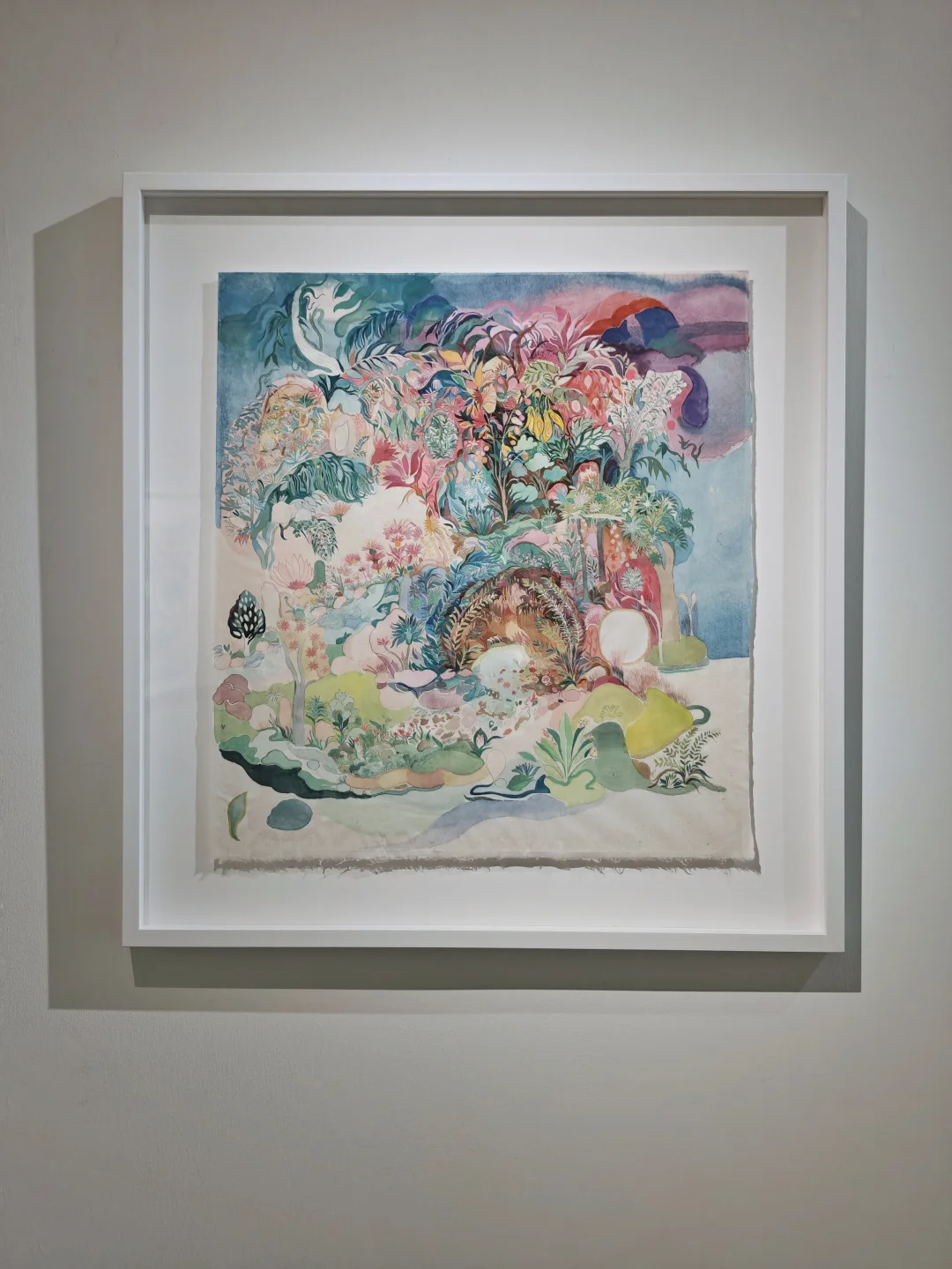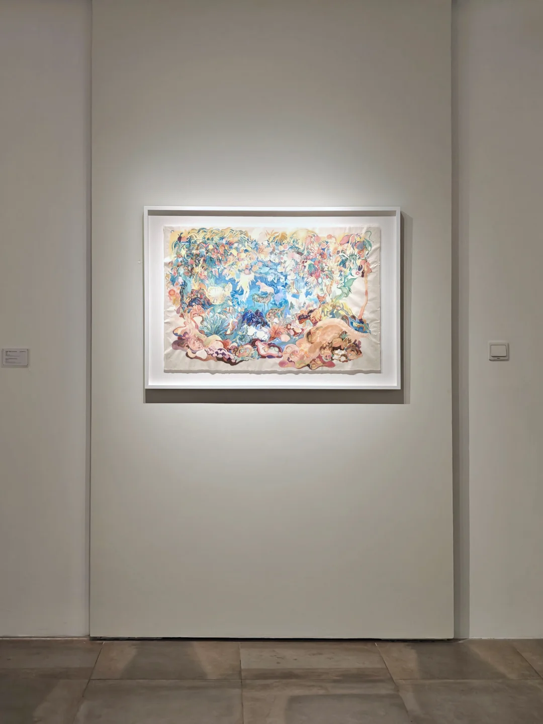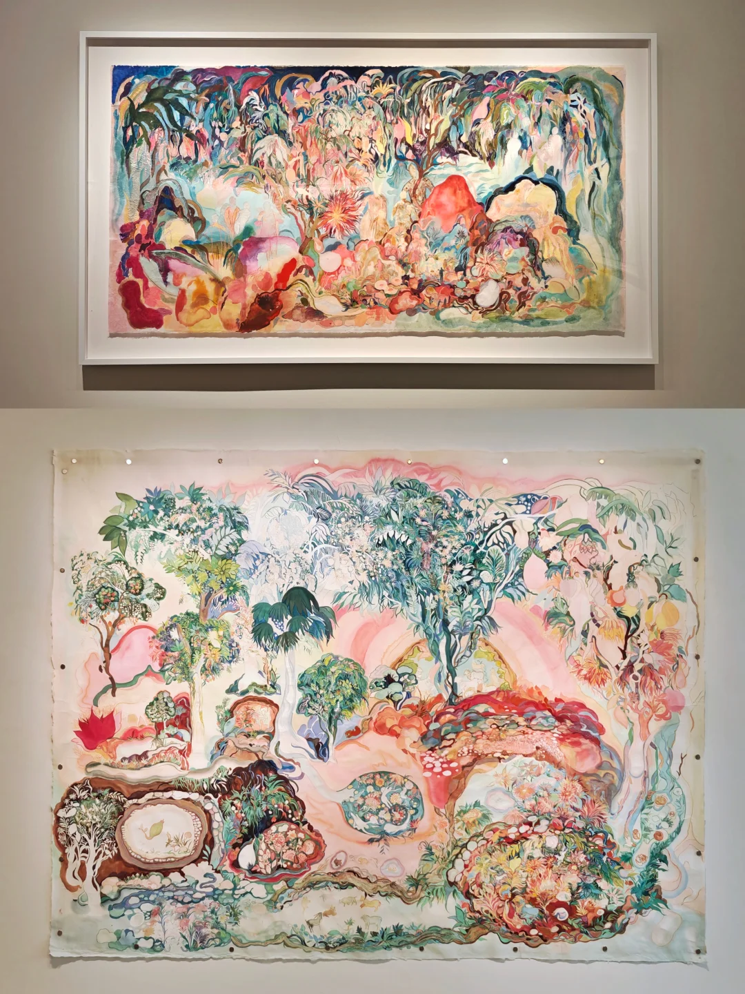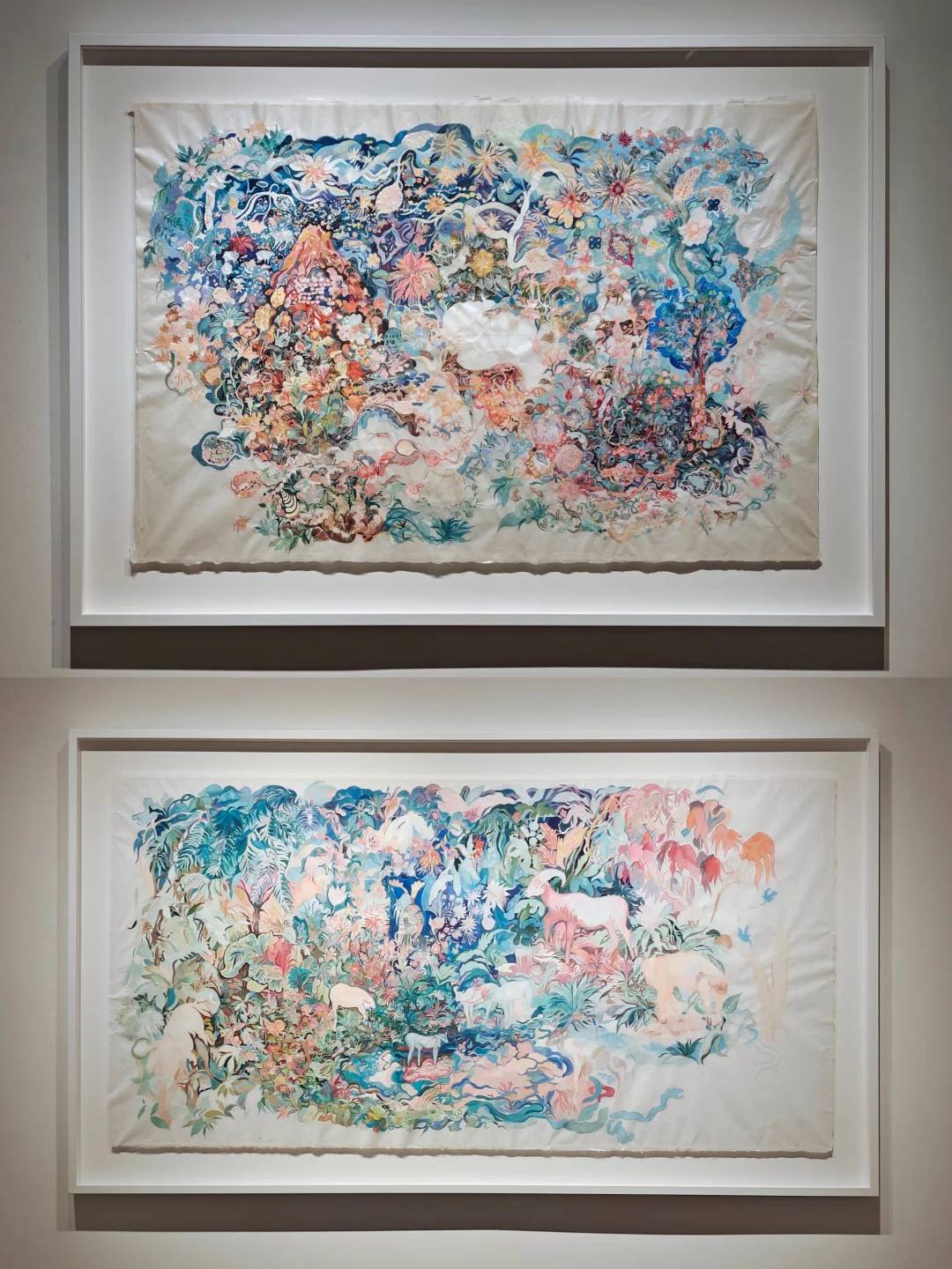 👉前年在杜梦堂看过这位艺术的首展,这次是第二次展览,风格很独特,还是很好认的。相比上次的偏冷色调,这一次画面的色调感觉更梦幻柔和了。