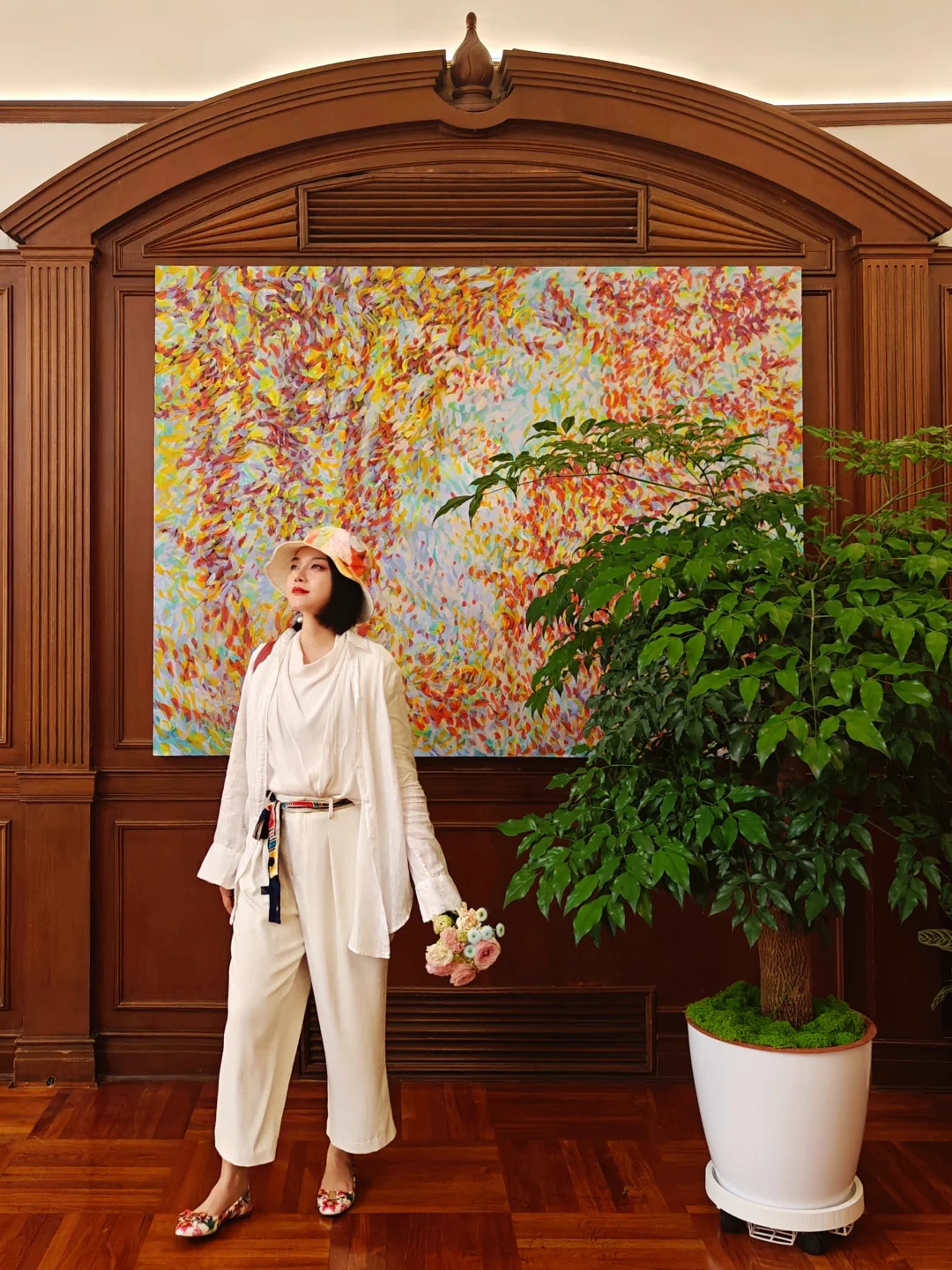 正确的打开方式:带上一束花,或者穿搭一件有花卉元素的单品,和喜欢的展品合影