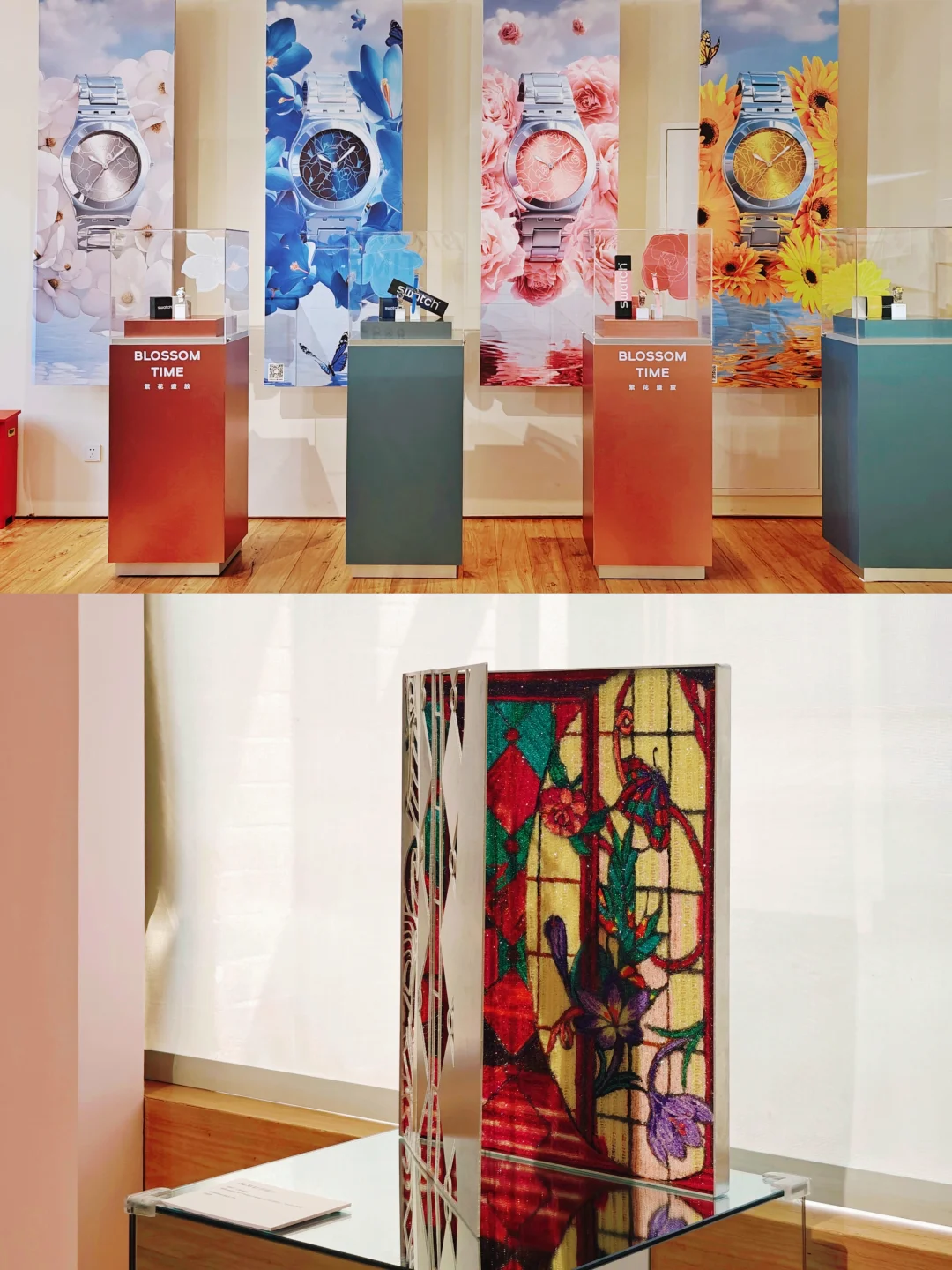 ⌚入口处有四款展览同名的繁花盛放系列手表展示,灵感源自对四种花卉的创新设计,试戴了一下轻盈无感,表盘的多巴胺色系也很适合春夏,搭配各种漂亮的小裙子或者休闲装都很亮眼