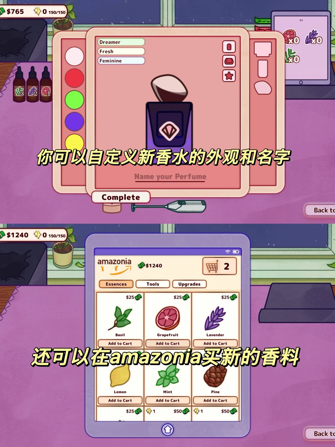 调配香水,从自制原料、设计、制作、包装、出售,一步步升级小店,解锁更多的配方~成为更厉害的调香师。