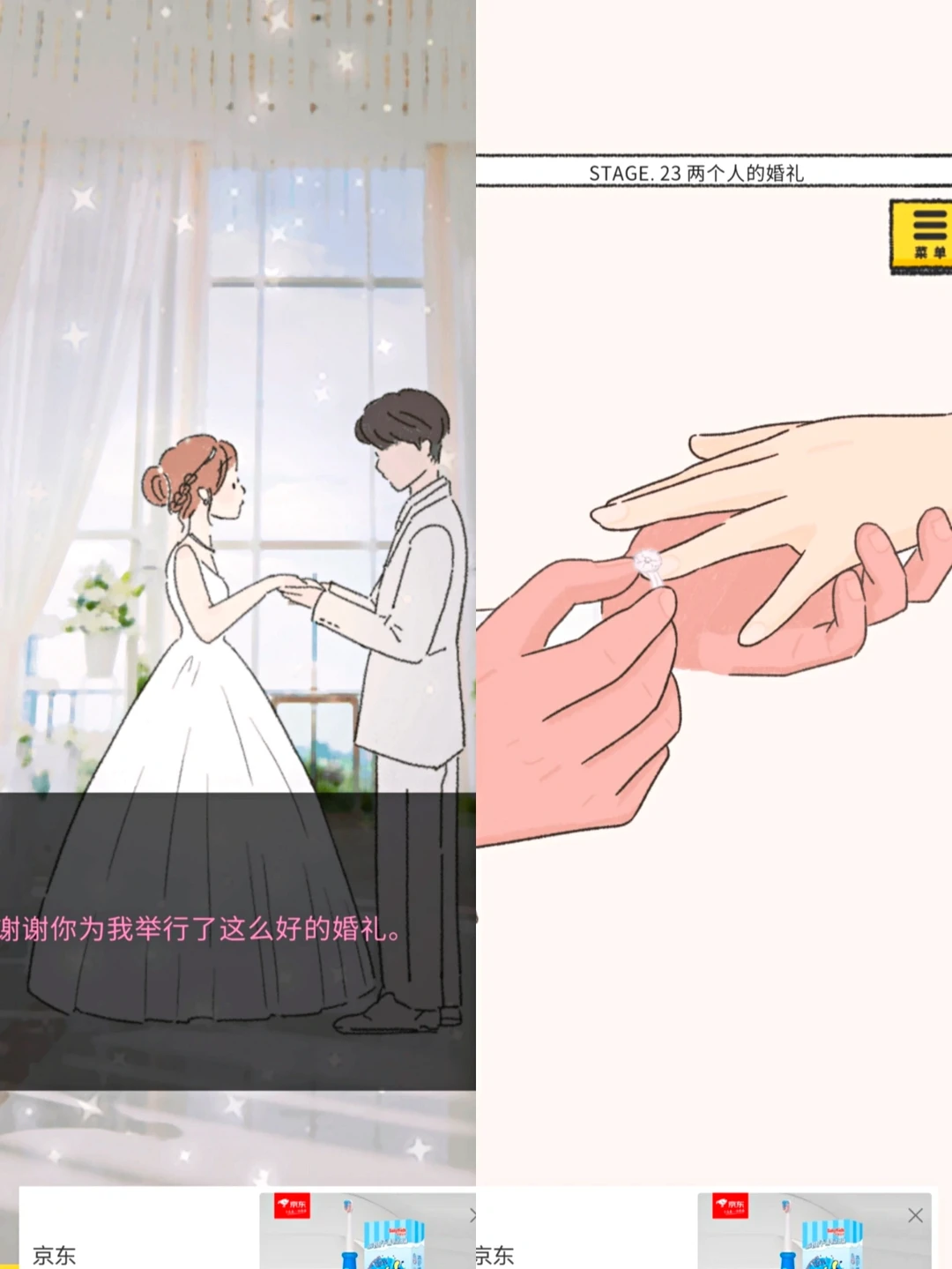 进入游戏后,我们一直以男生视角看,去照顾在医院的女主,到最后也要实现女主的愿望,最后给女主举行了真挚的婚礼💒。