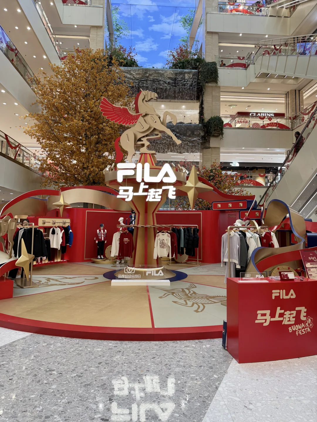 这两天在赛格逛街的时候,偶遇了一个超有新年氛围的快闪店! 原来是FILA为了迎接农历马年,特别打造的「马上起飞」主题空间 整个空间的设计真的好有巧思,一进门就会被头顶的飞马造型震撼到! 呼应今年的马年,寓意一跃冲天马上起飞~ 整个快闪店以马为灵感的四品棋盘格设计,每一步都像在走好运棋局,寓意超好! 整体红金配色,新年氛围拉满,路过很难不停下来拍照打卡📸 趁着周末快去赛格中庭FILA快闪店get同款新年氛围感大片吧